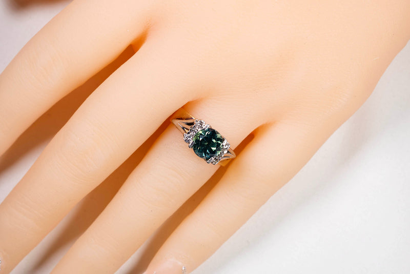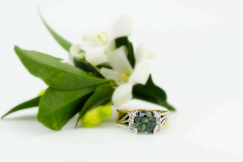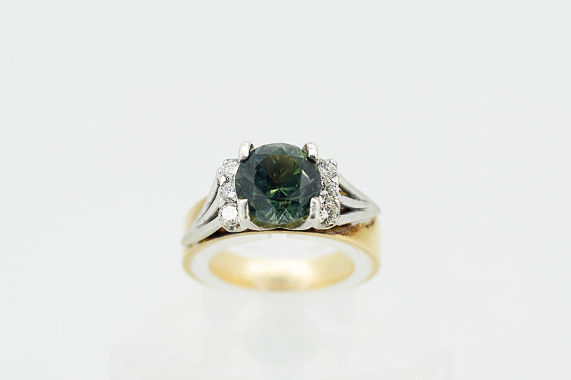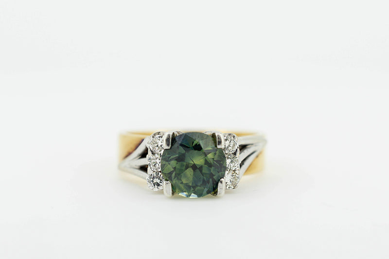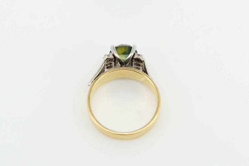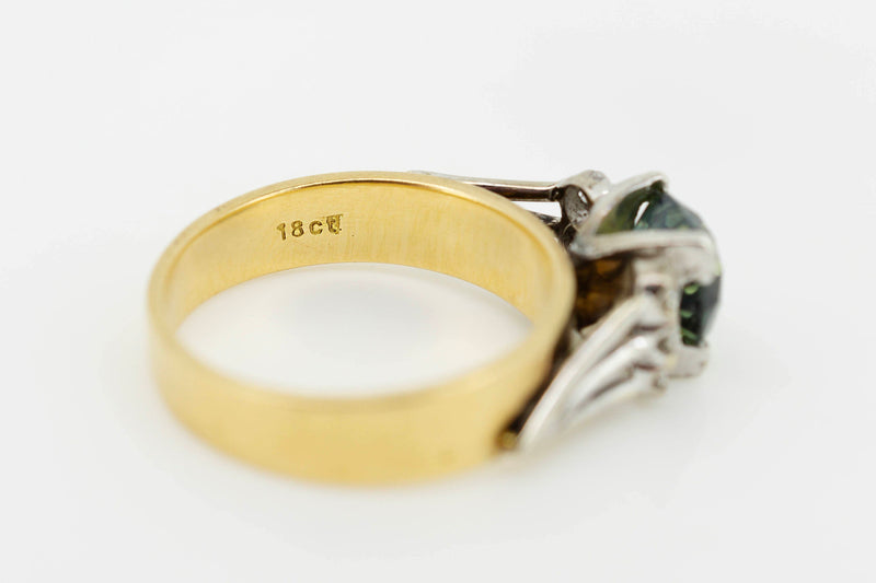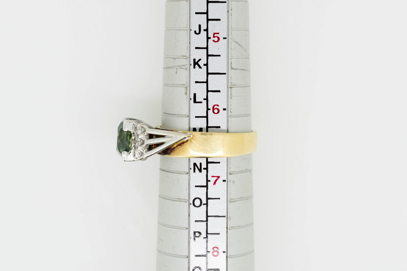 18ct Yellow Gold Blue/Green Topaz and Diamond Ring #28105-1