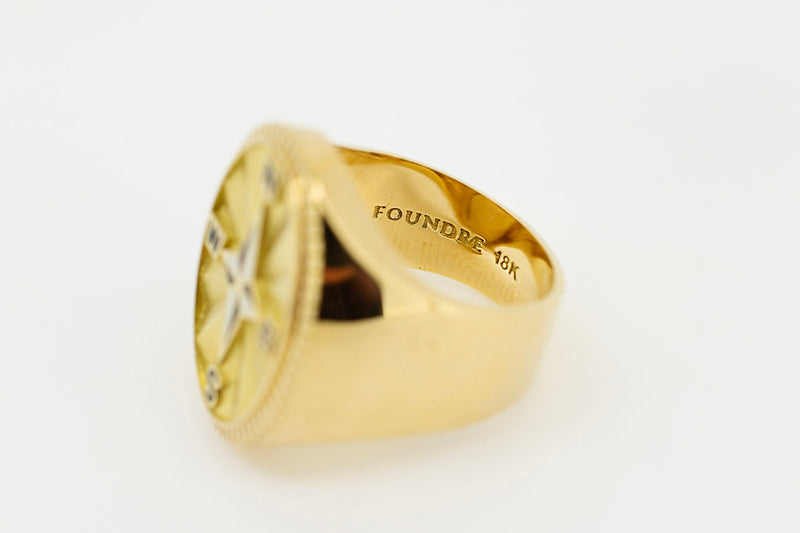FOUNDRAE BRAND 18ct Yellow Gold North / East /South/ West Signet Ring #28137