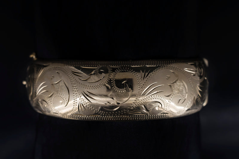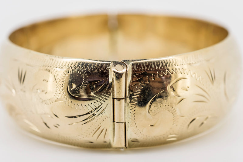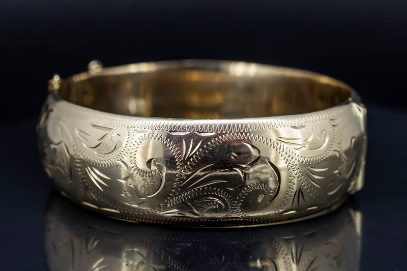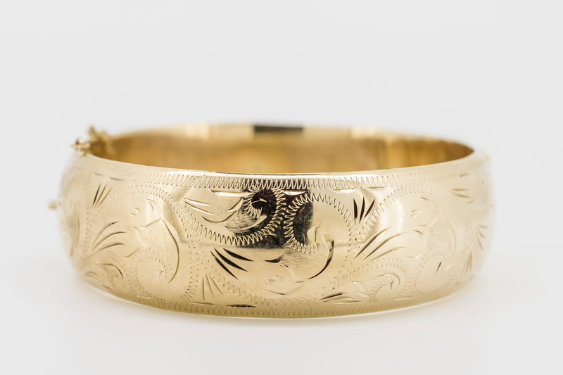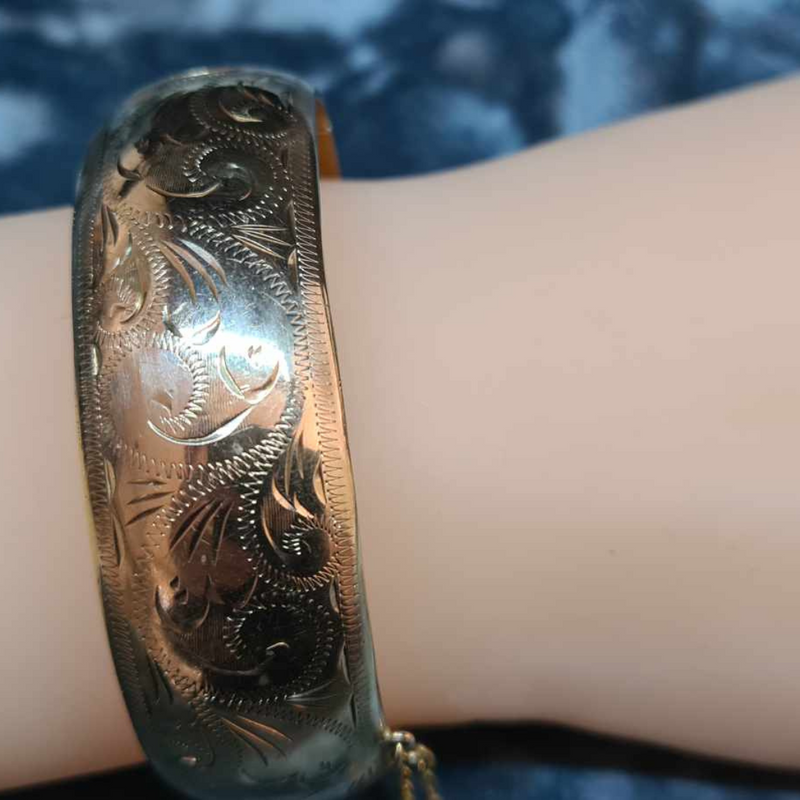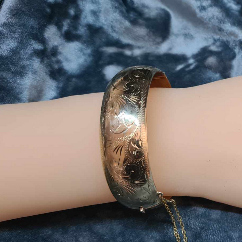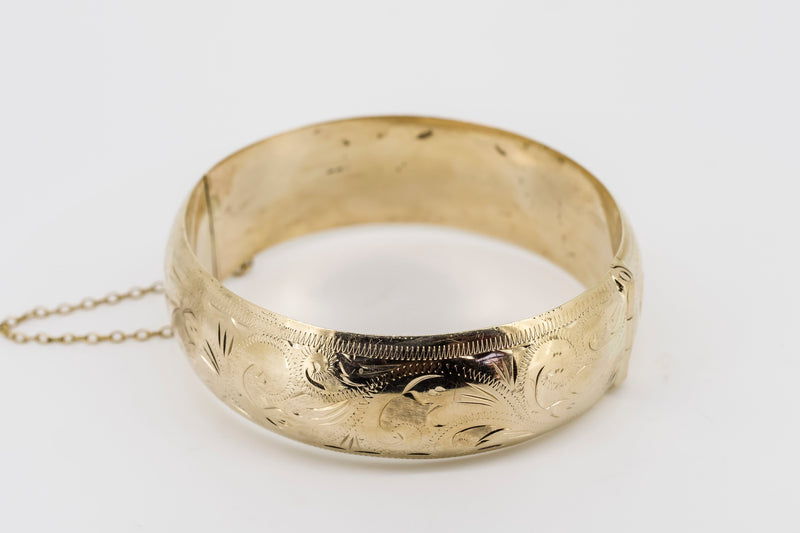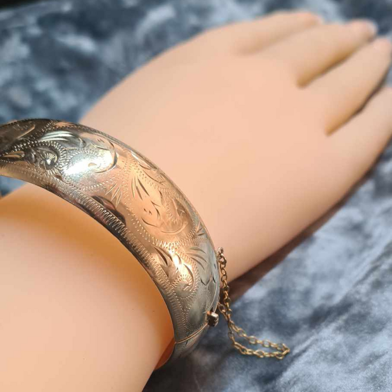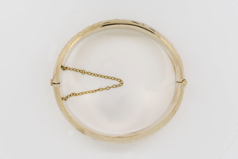 9CT Yellow Gold Bangel With Filigree and Chain #26107
