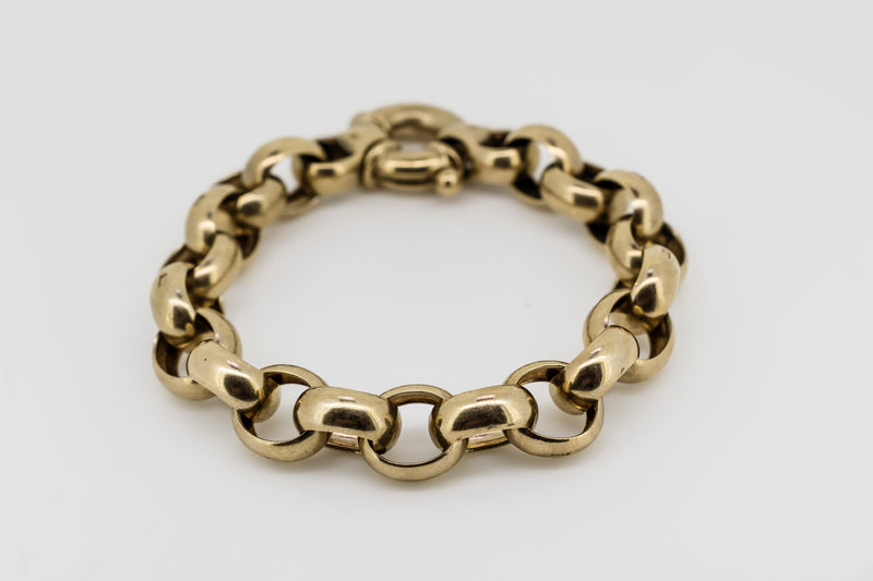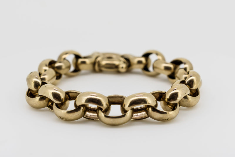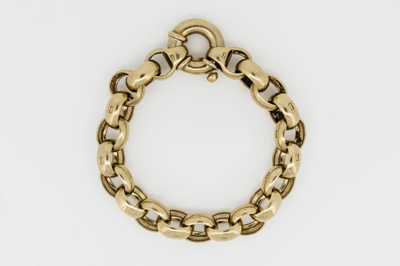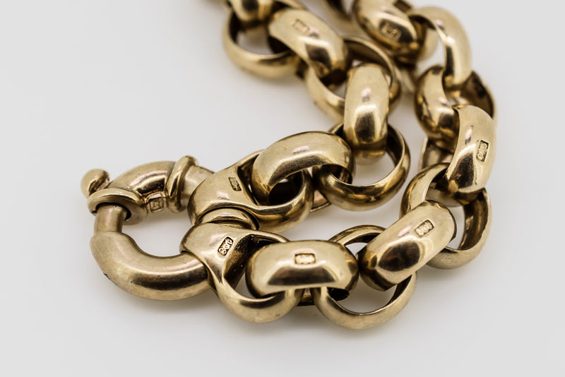 9CT GOLD BELCHER CHAIN BRACELET WITH HALLMARKED LINKS