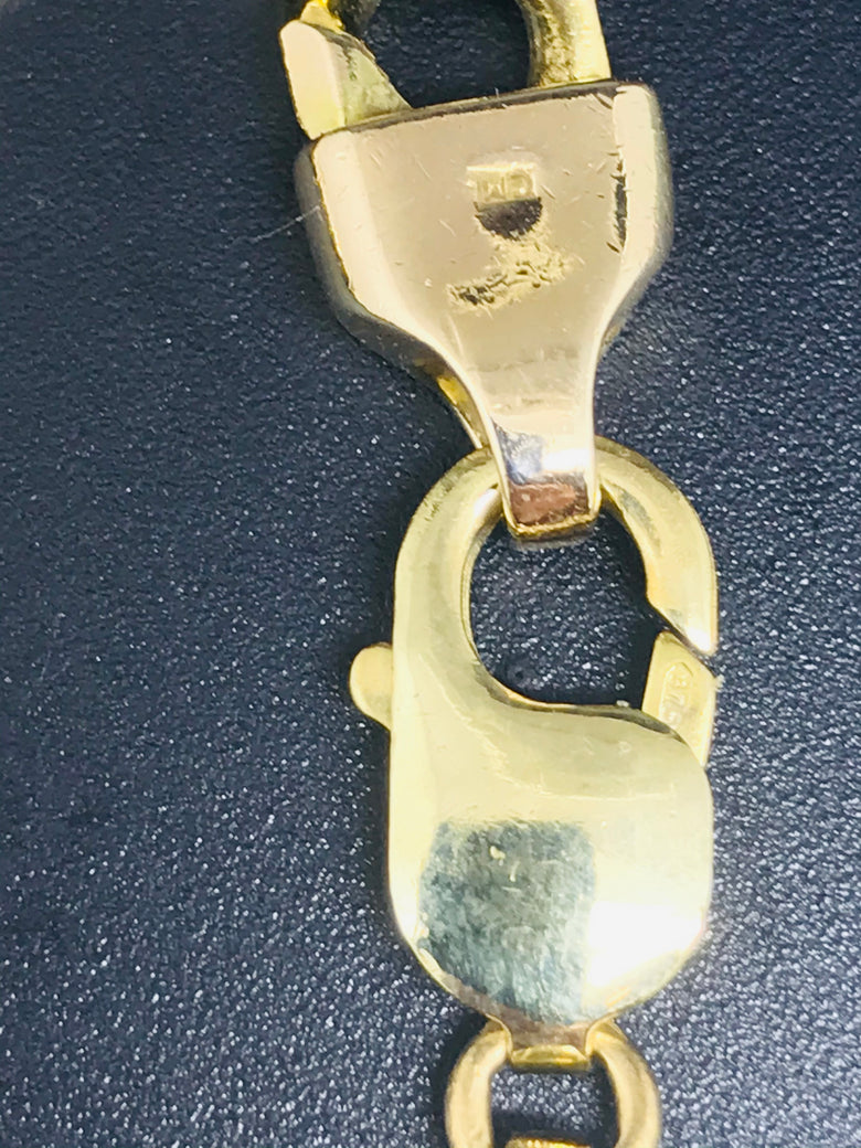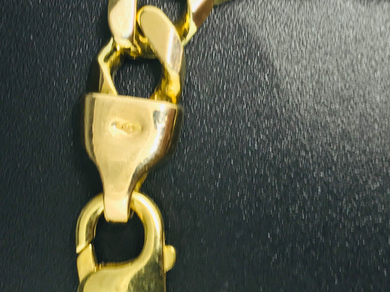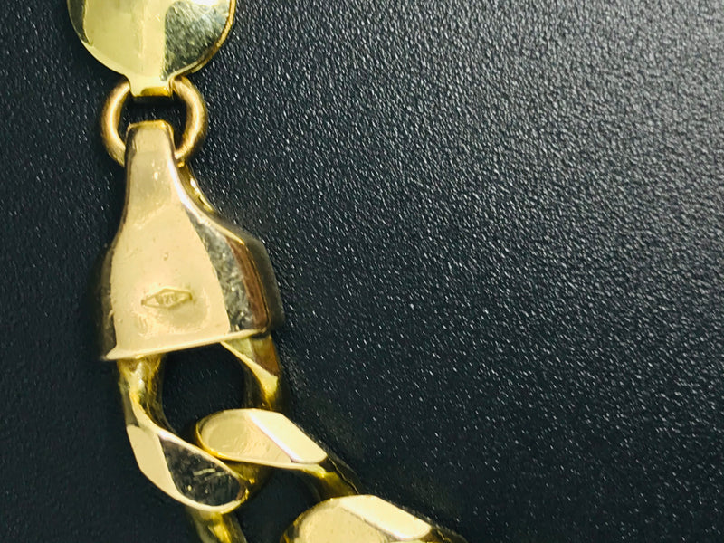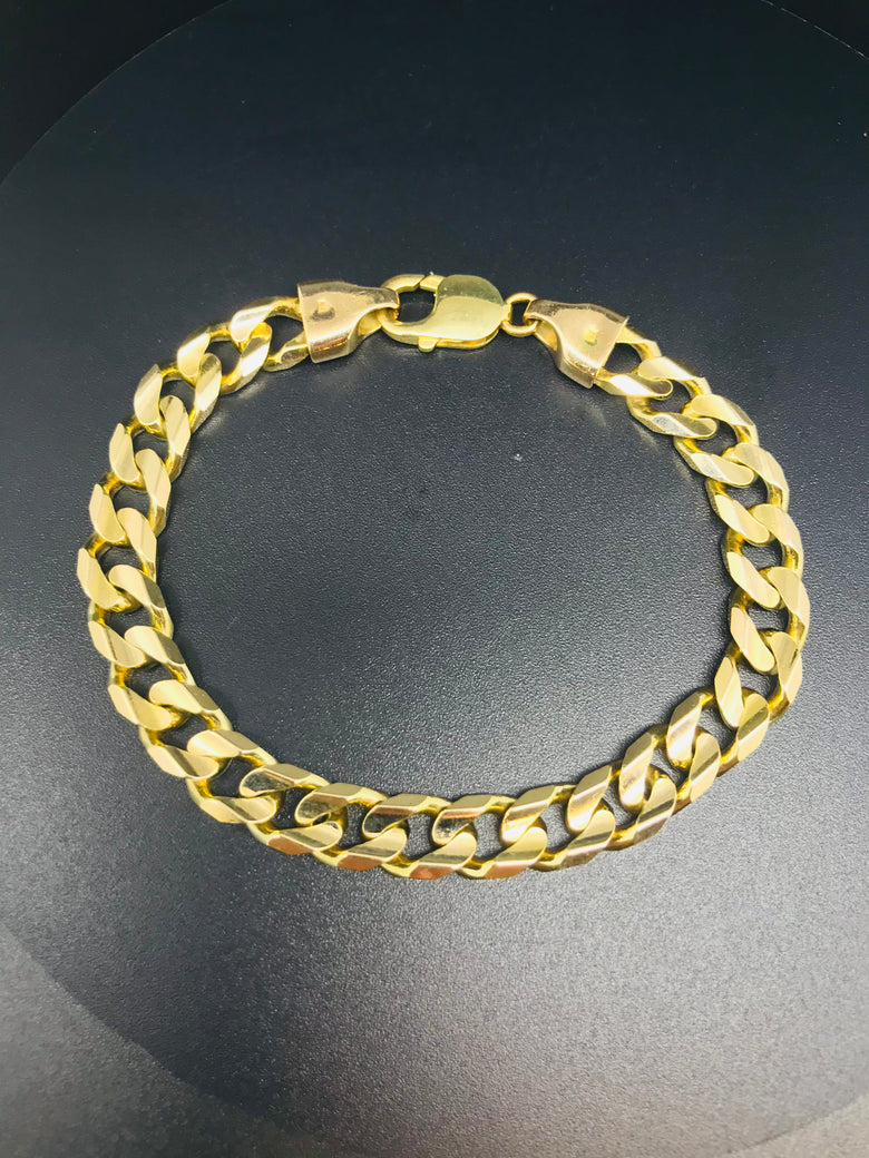 This is a heavy diamond cut, curb bevelled edge bracelet in 9cy yellow gold.