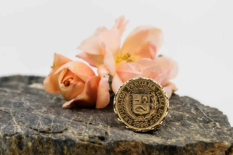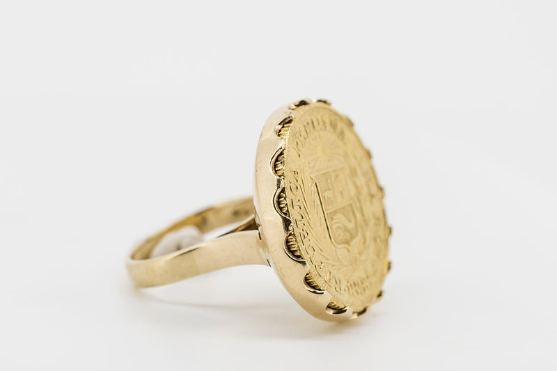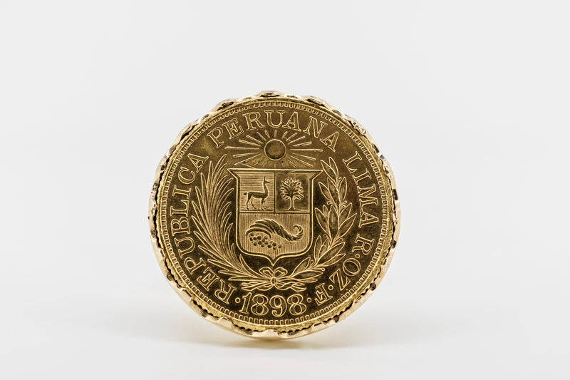 ANTIQUE 1898 1 POUND LIBRA GOLD COIN RING