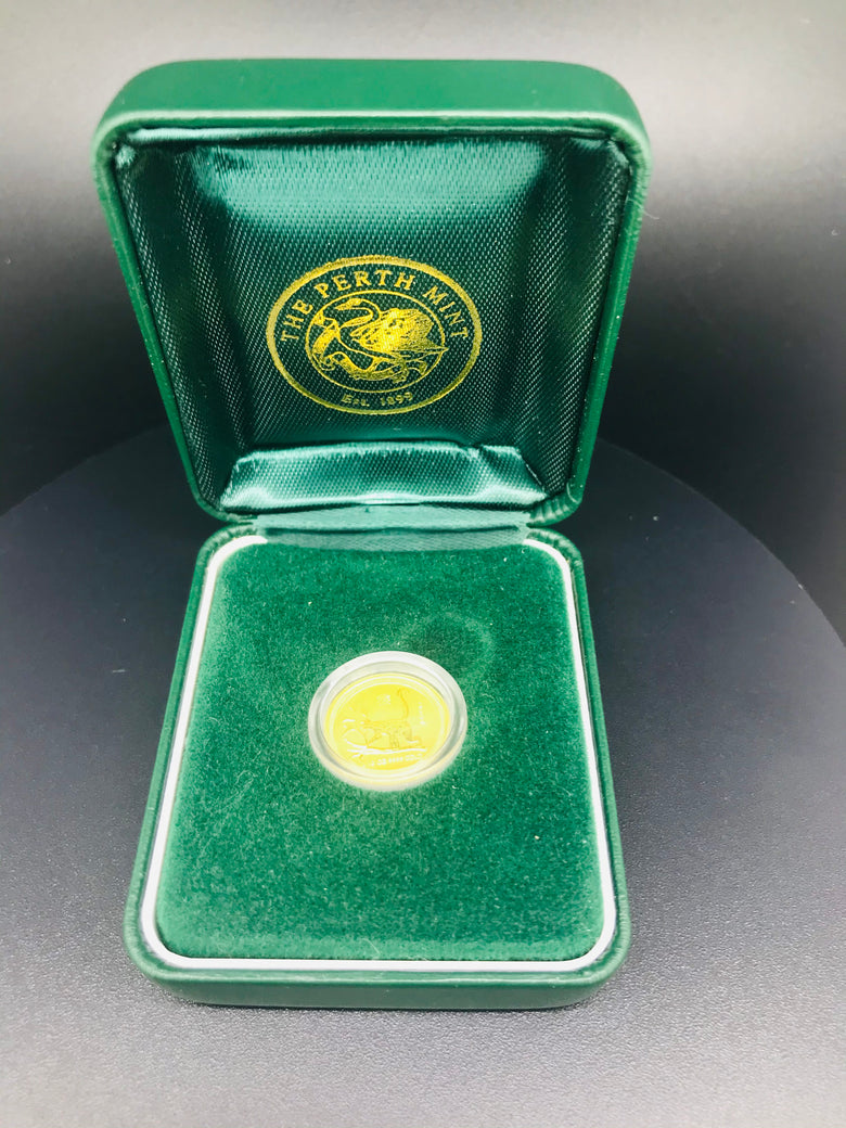 Two x Pure gold coin 9999 24ct 'Little Hero' 1/10oz gold in mint condition, minted in 1987 to commemorate discovery of gold Nugget 'Little Hero' in 1890.Comes as pictured, untouched and in mint condition.