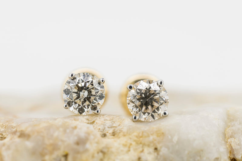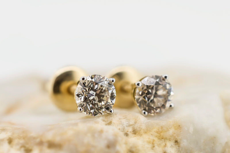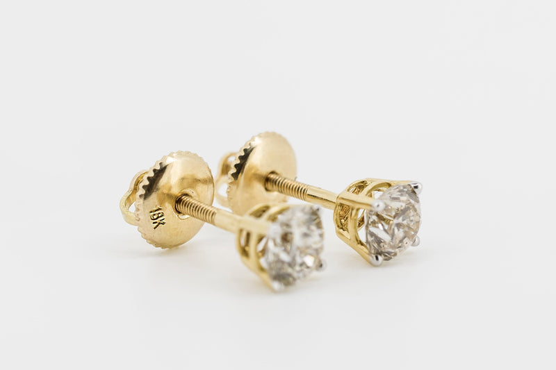 These exquisite 18ct gold diamond stud earrings feature lustrous gold with small, brilliant diamonds in the center for an elegant touch. Crafted with diamond- cut detailing for added sparkle, these timeless earrings are luxurious and eye-catching.