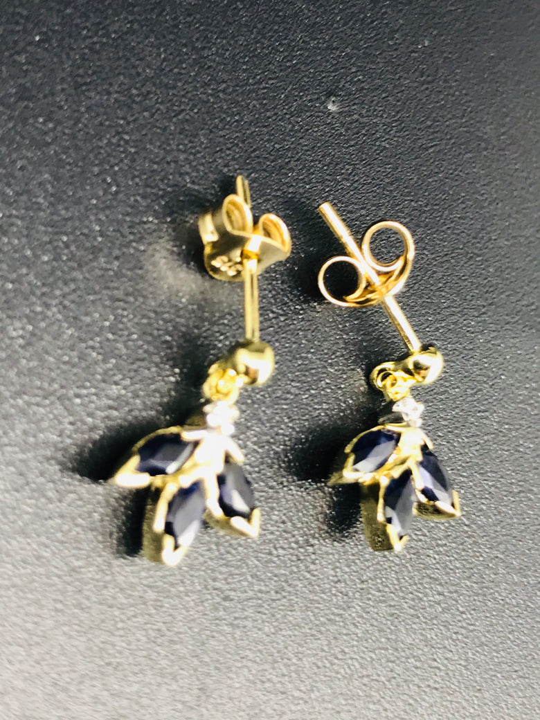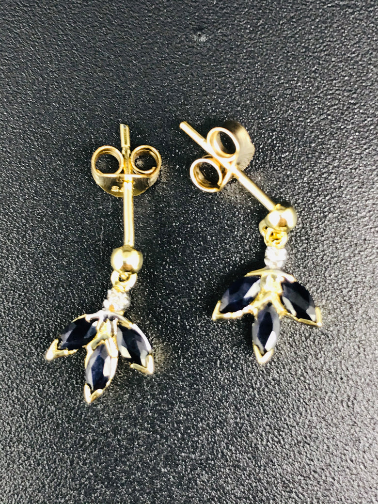 9ct gold earrings sapphire and diamonds