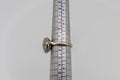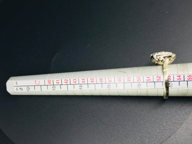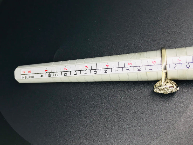 The shank is tapered with a squared profile and up swept shoulders with a rhodium plate finish