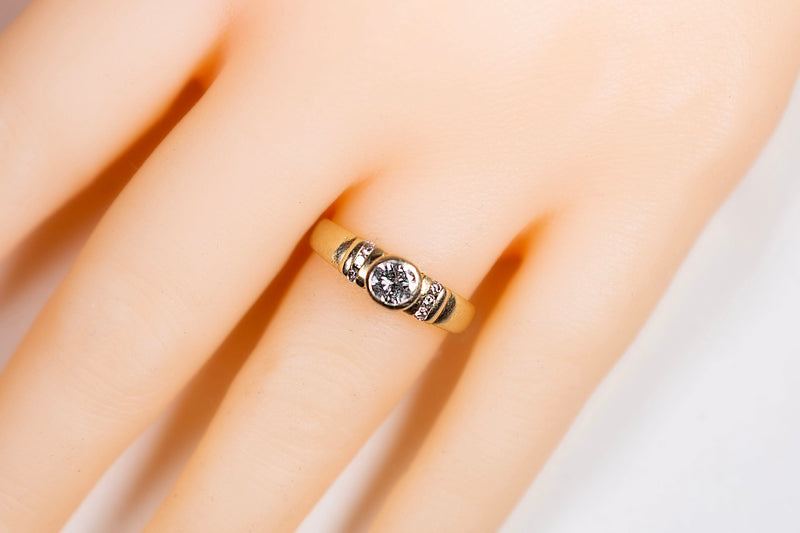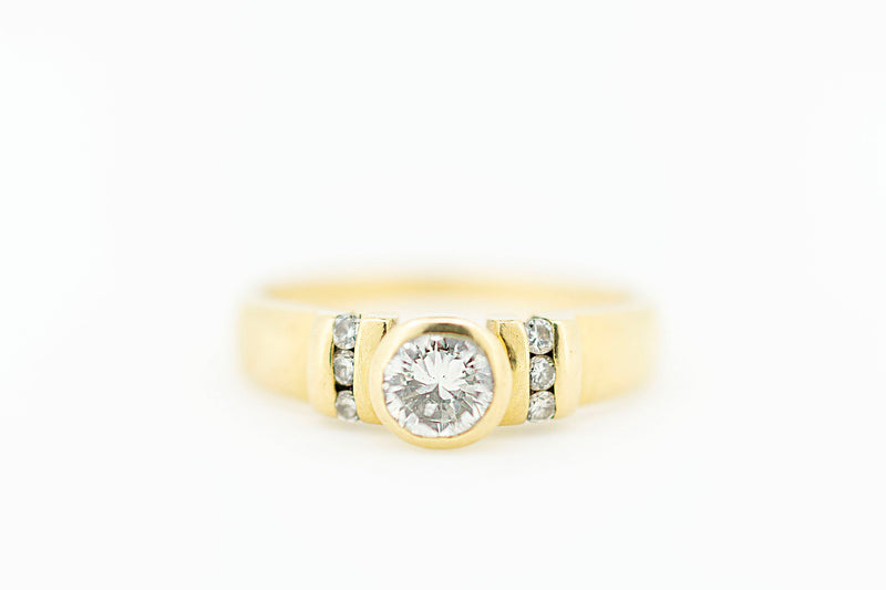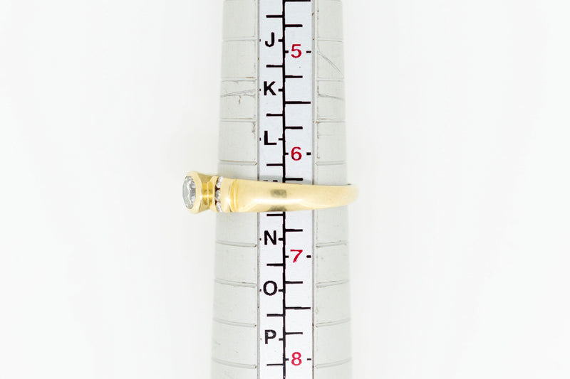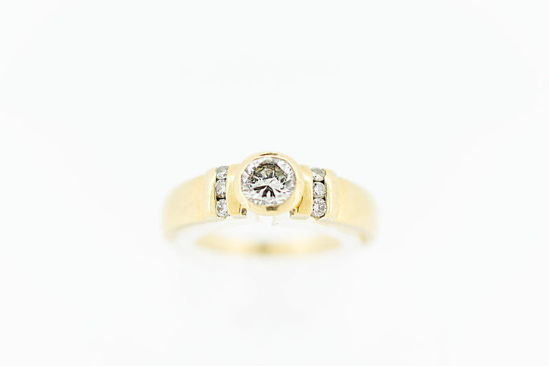 18ct Yellow Gold Bezel Set Diamond Solitaire Ring With Side Accent Diamonds