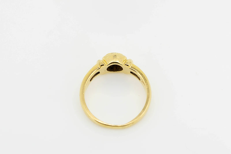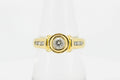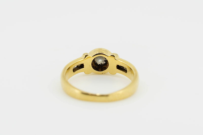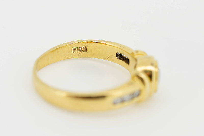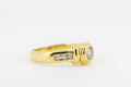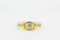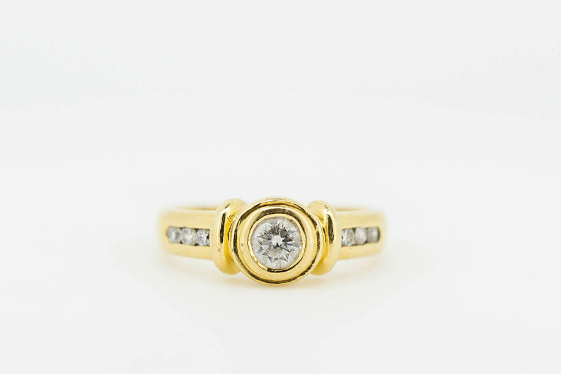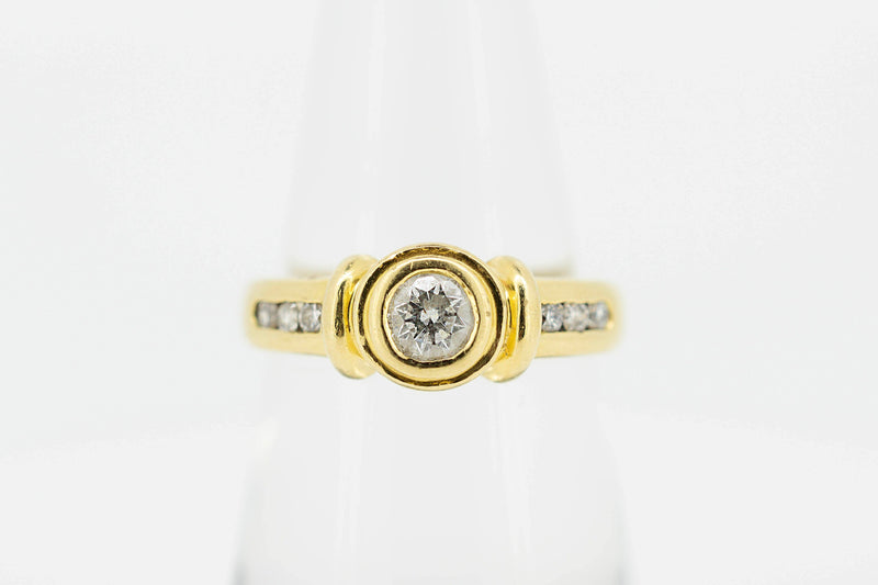 18ct Yellow Gold Ring With Round Bezel Set Center Diamond With 6 Channel Set Accent Stones