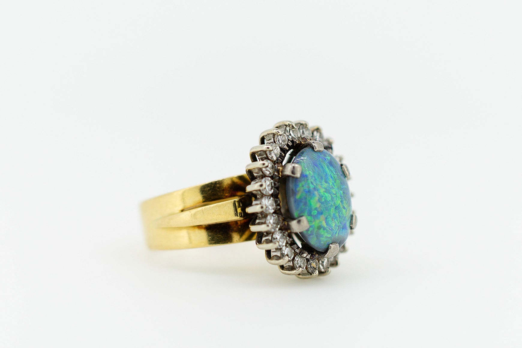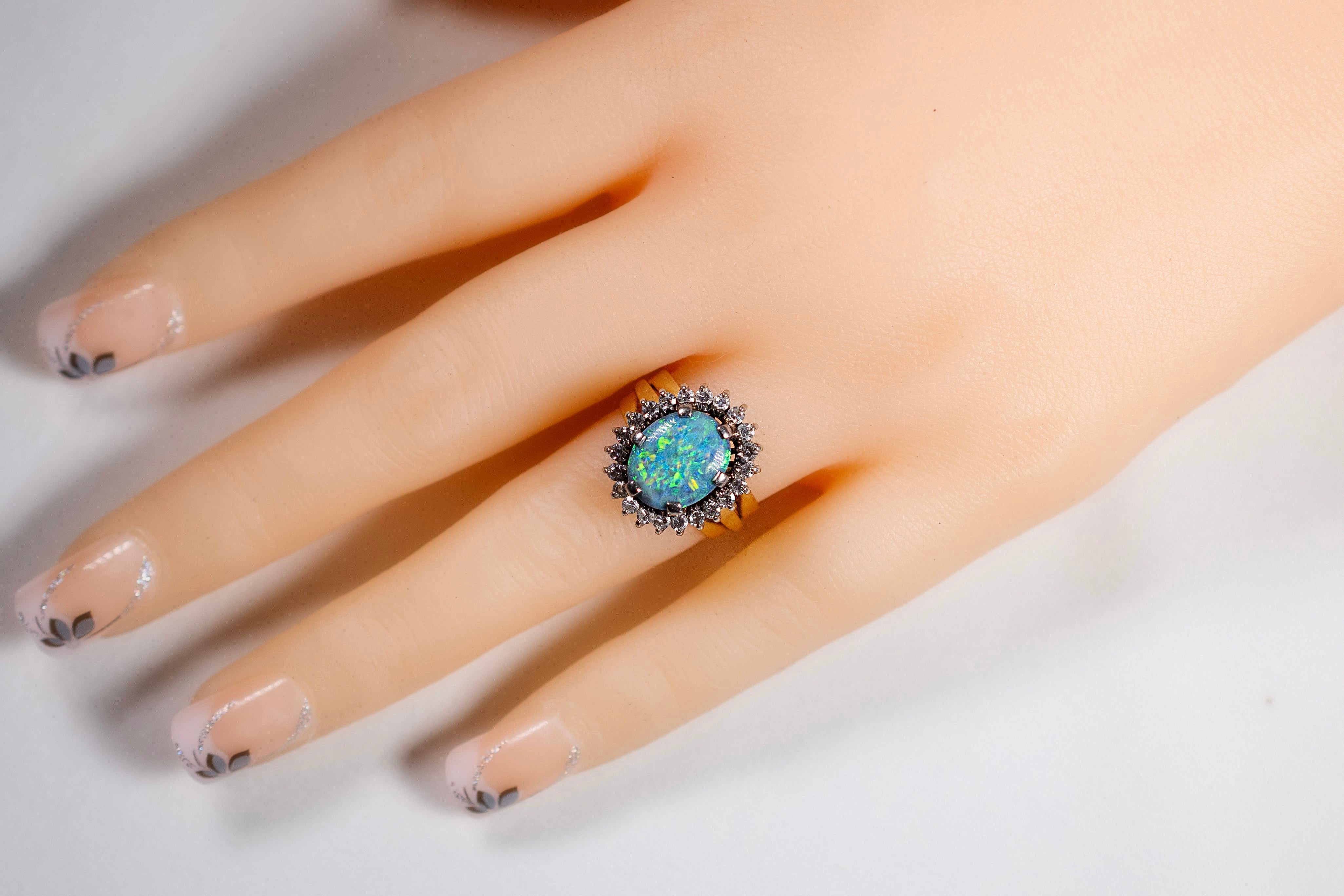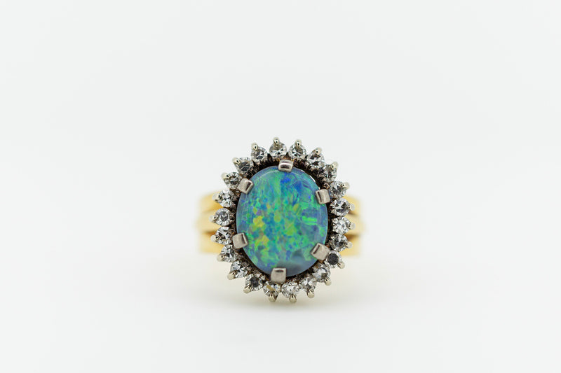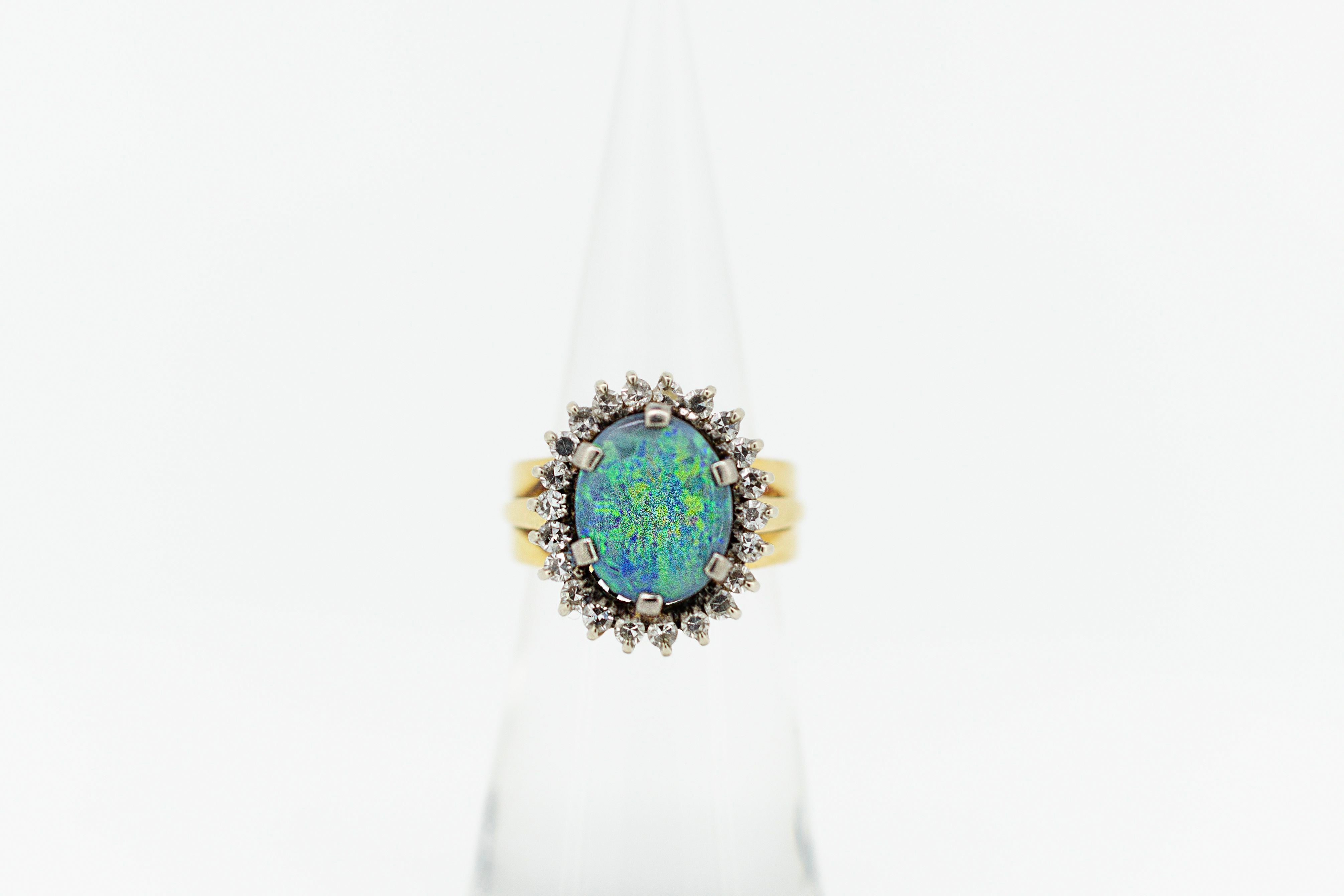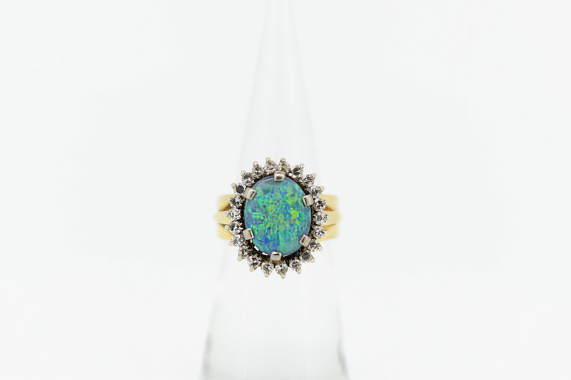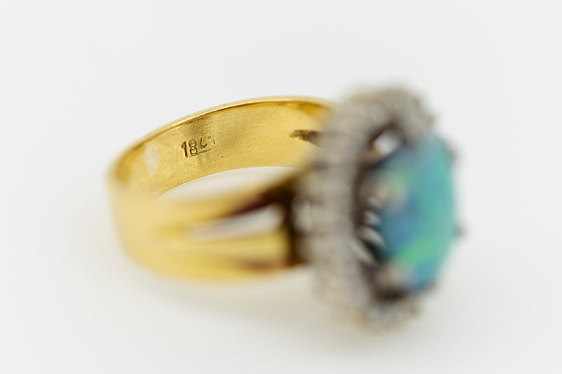 18ct Yellow Gold Turquoise Opal and Diamond Ring #9371