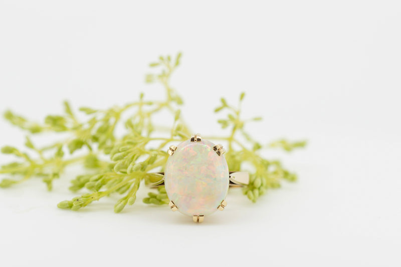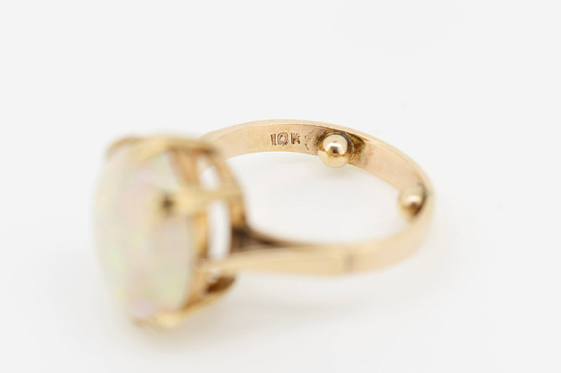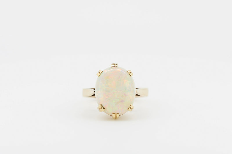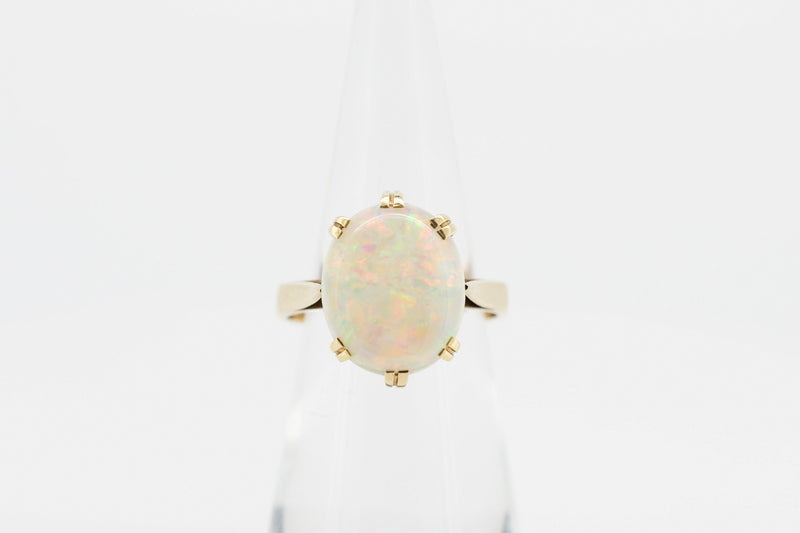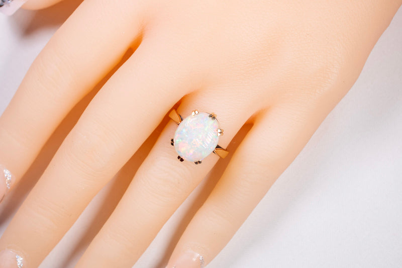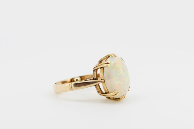 10ct Yellow Gold Claw Set Solid White Opal Ring #28133-3