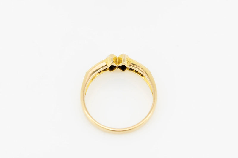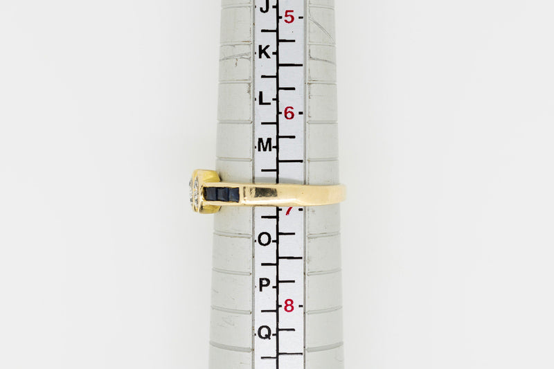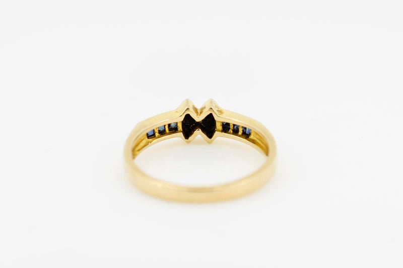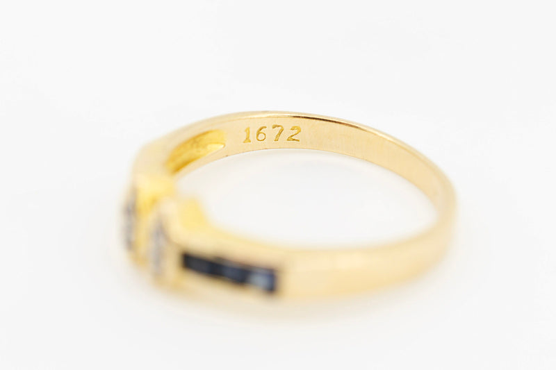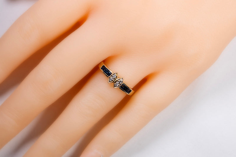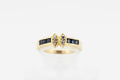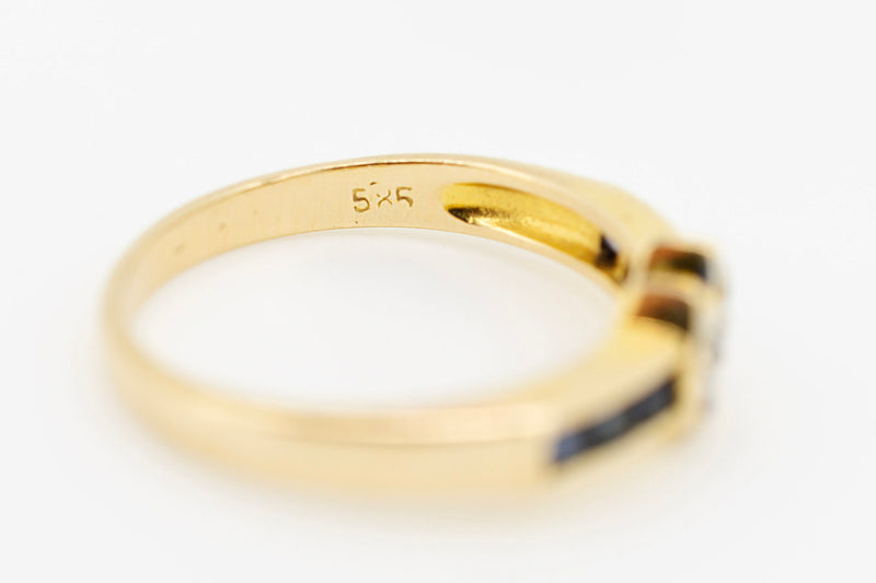 14ct Yellow Gold Dark Blue Sapphires in Square Channel Setting with Center Diamond Accent Stones