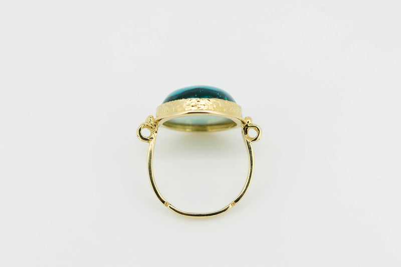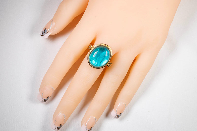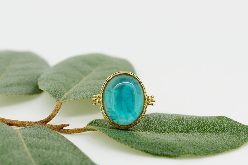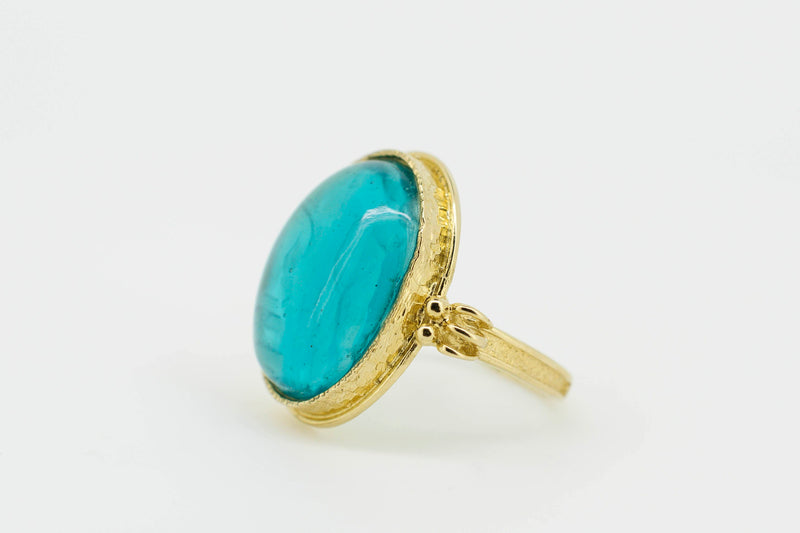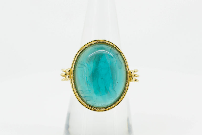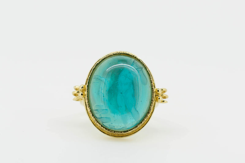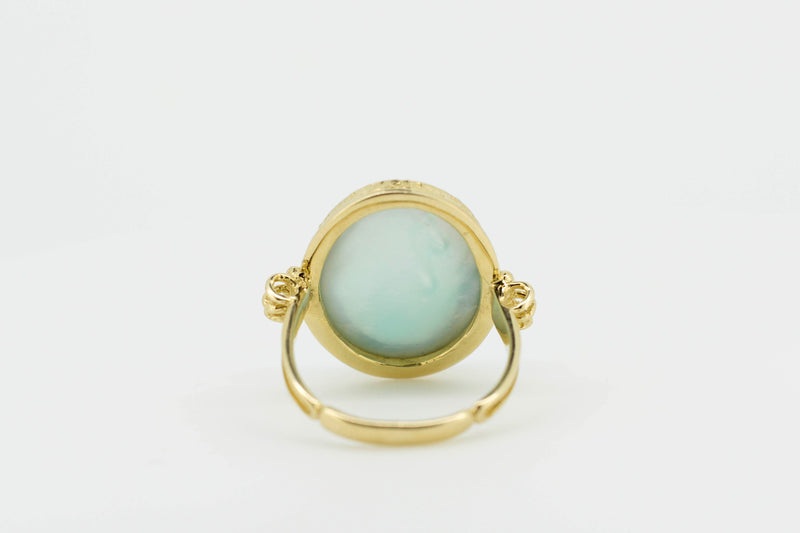 14ct Yellow Gold Mother of Pearl With Blue Glass #28138-1