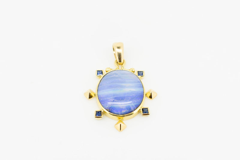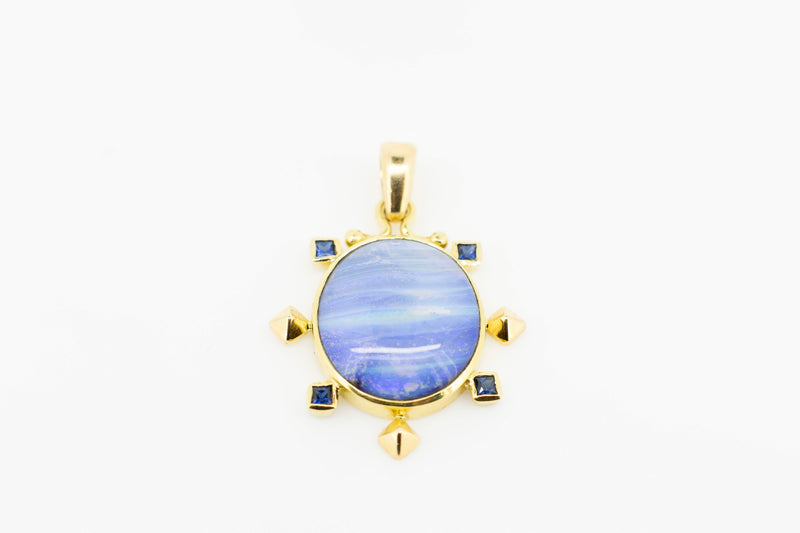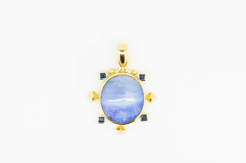 18ct Yellow Gold Pendant with Rainbown Moonstone & Blue Sapphires #27768