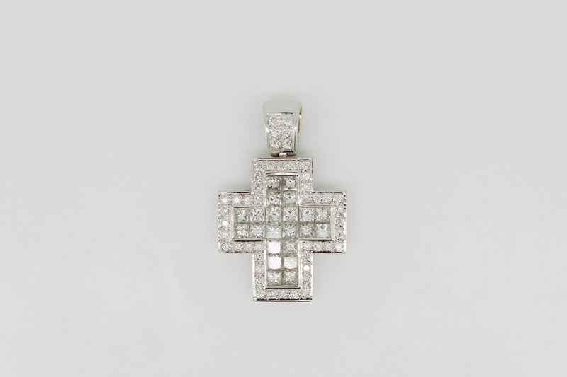 18ct White Gold Diamond Encrusted Cross Pendant #27899