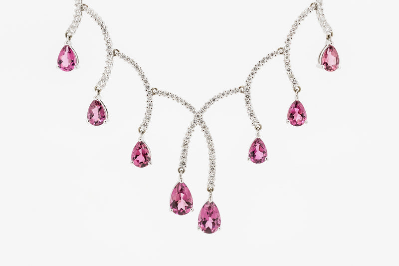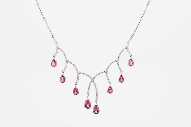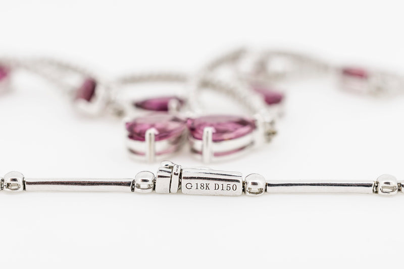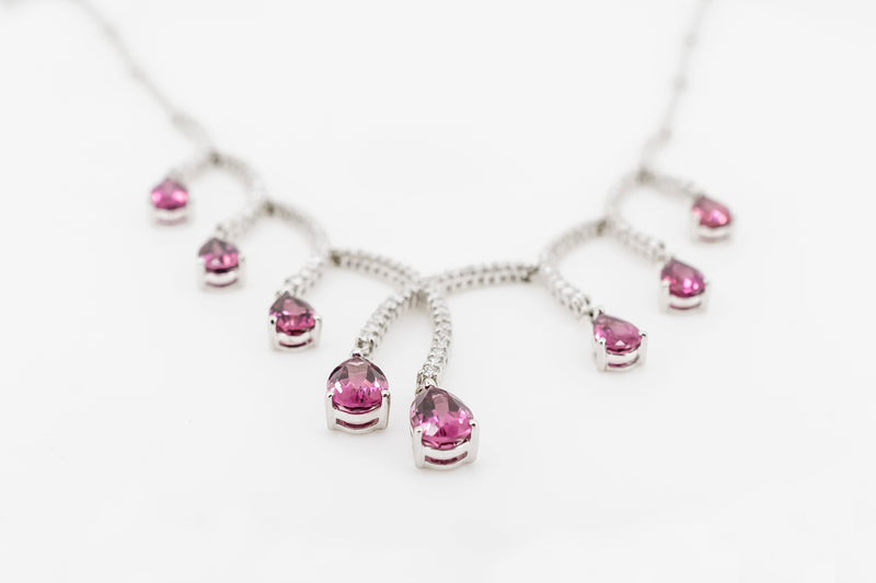 18ct White Gold Necklace with Diamonds and Pink Sapphire #27102