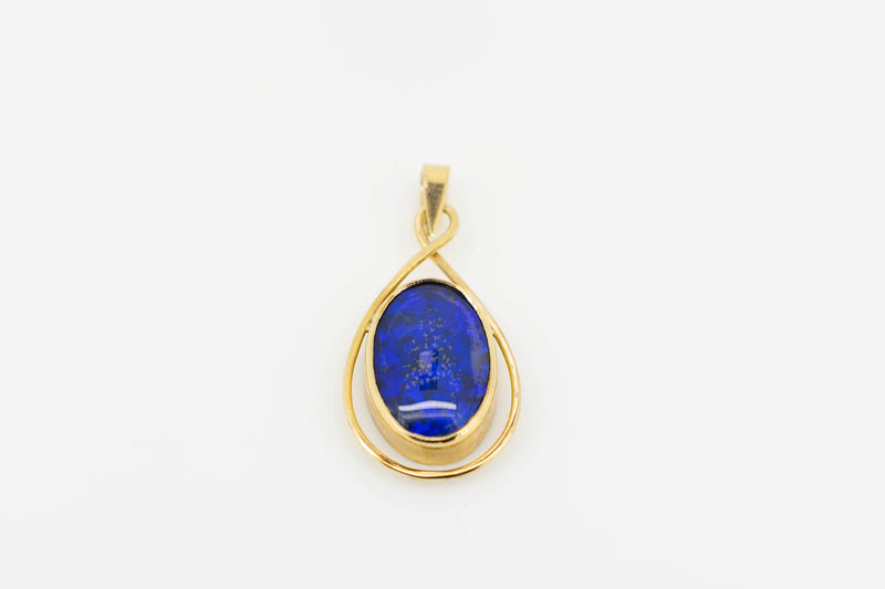 18ct Yellow Gold Oval Shape Blue Opal Triplet Pendant