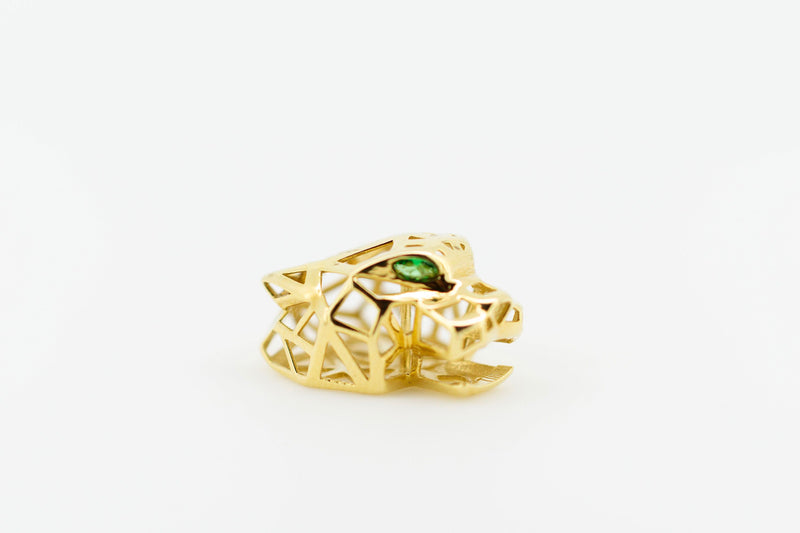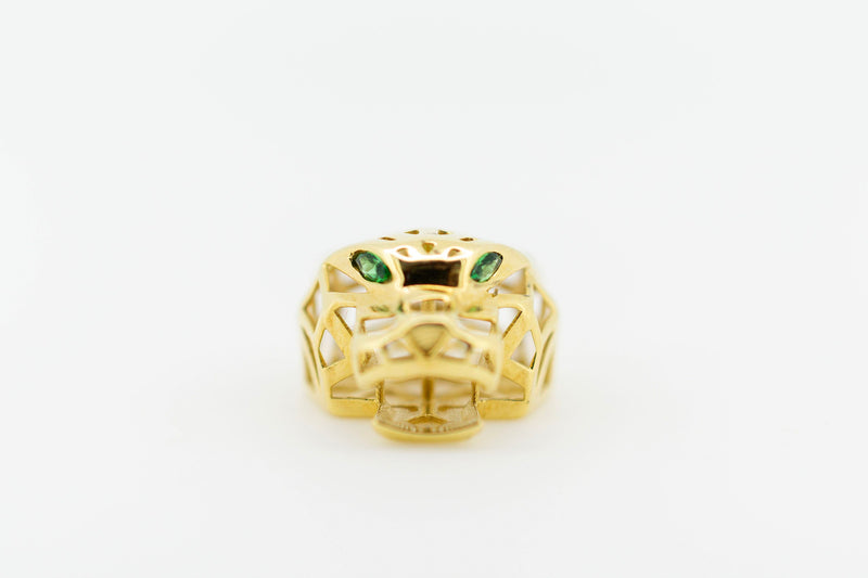 18ct Yellow Gold Panther Head Pendant with Emerald Green Eyes #21110