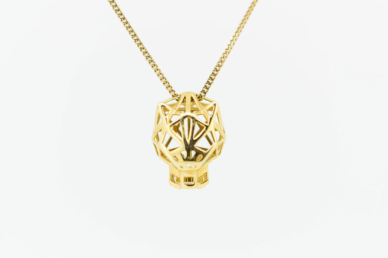 18ct Yellow Gold Panther Head Pendant with Emerald Green Eyes