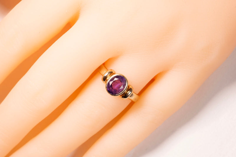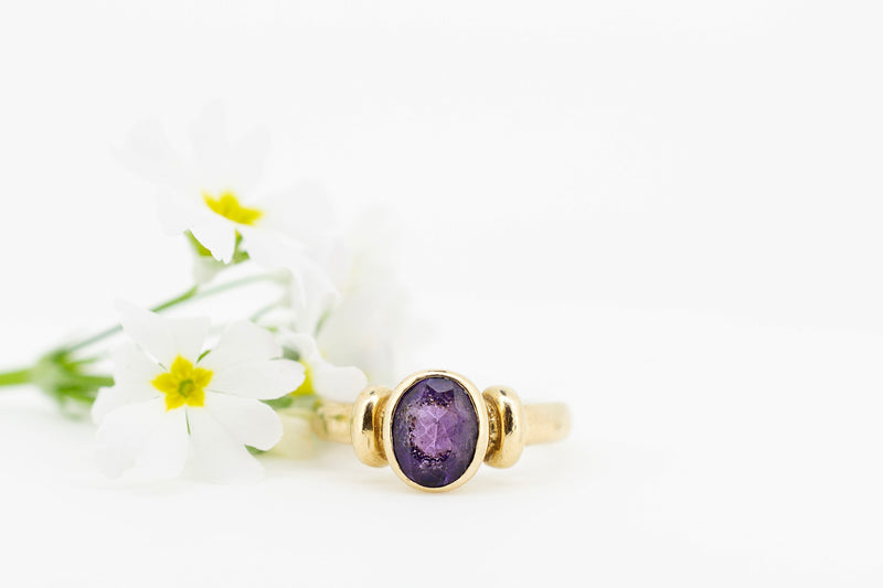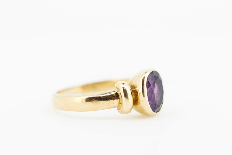 9ct Yellow Gold Ring With Bezel Set Oval Amethyst #27719