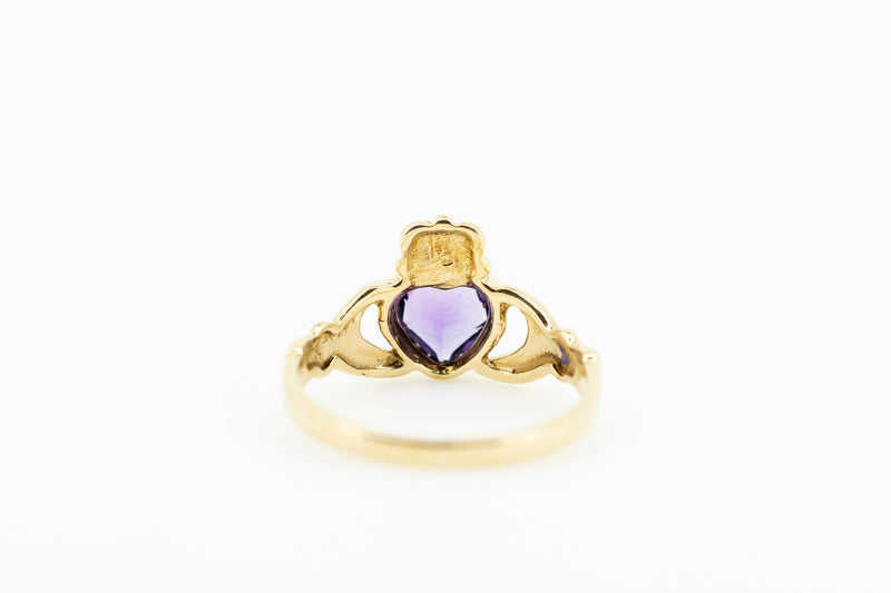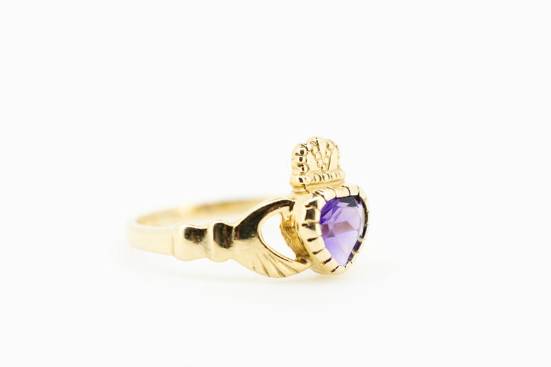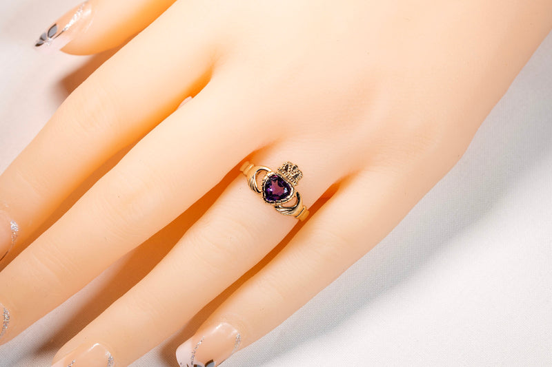 9ct Yellow Gold Claddagh Ring with Amethyst Stone #27642