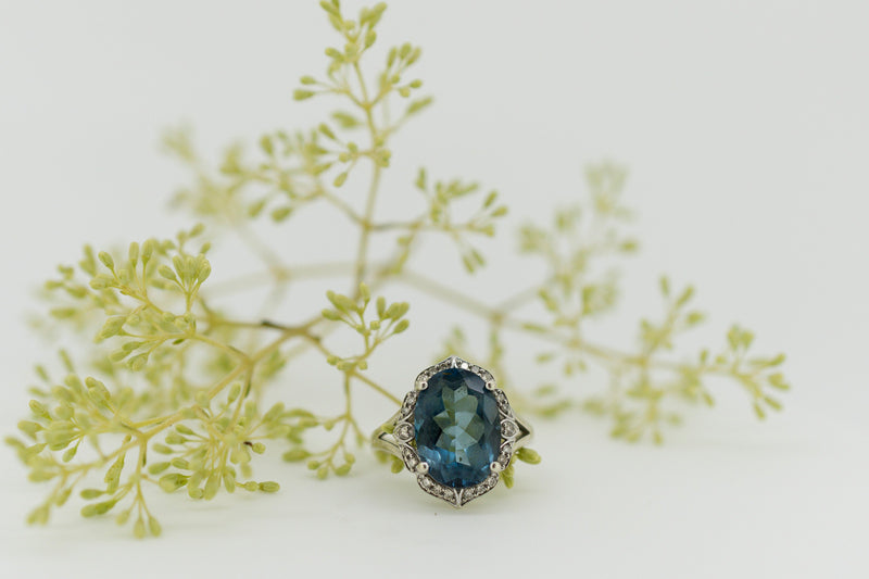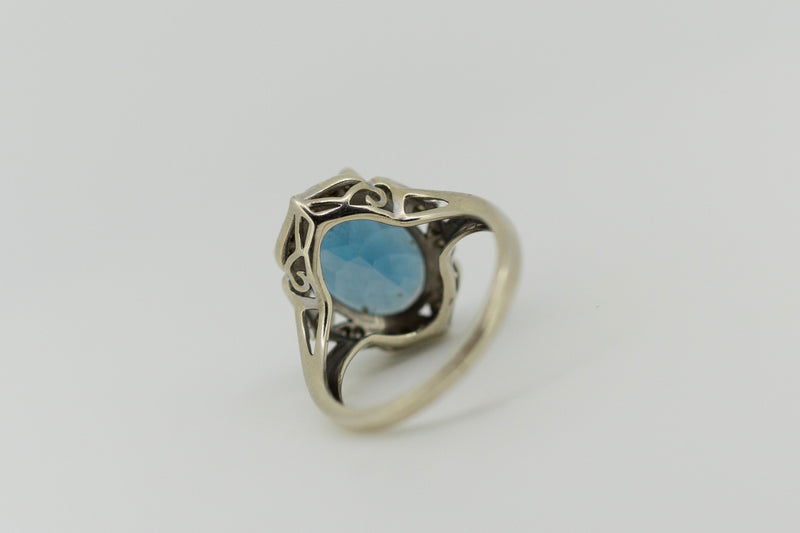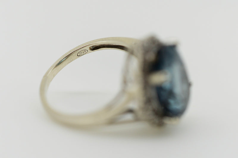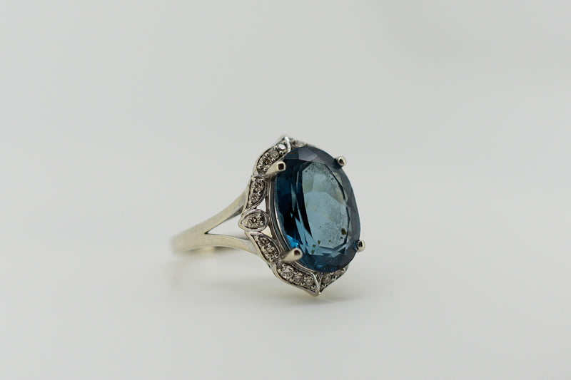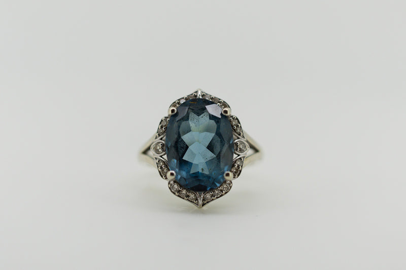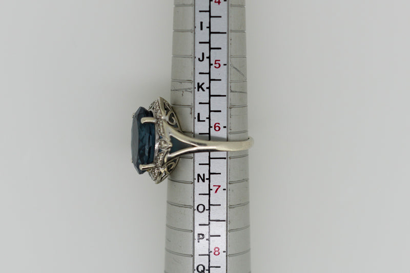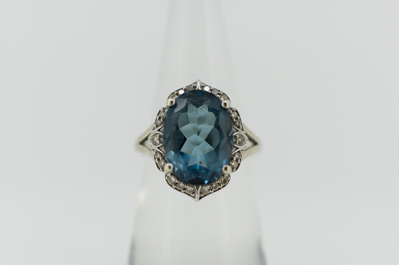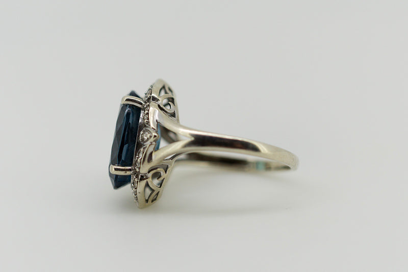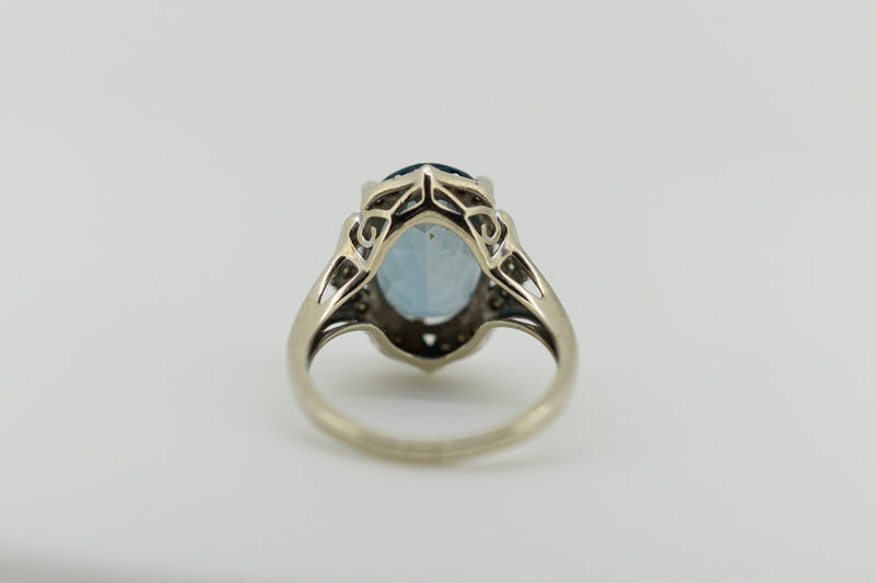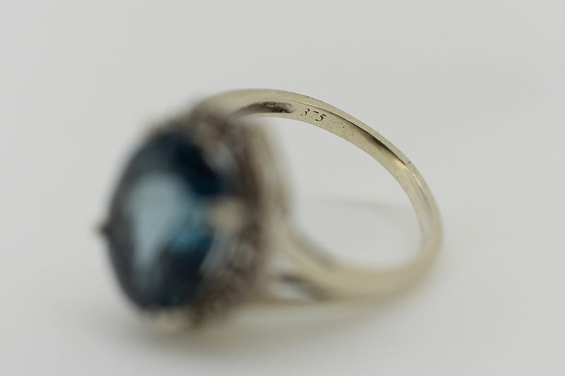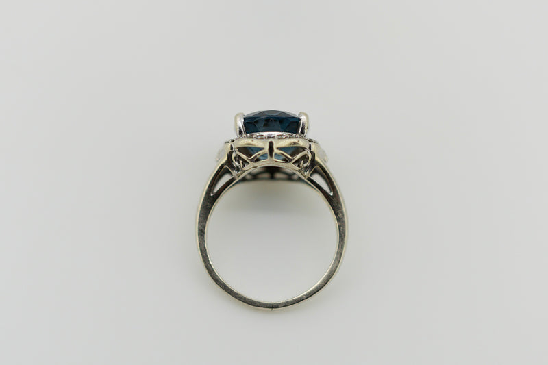 9ct White Gold Blue Topaz and Diamond Ring #9364