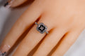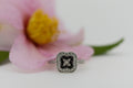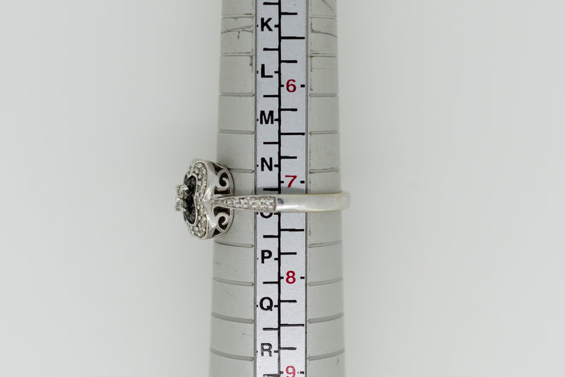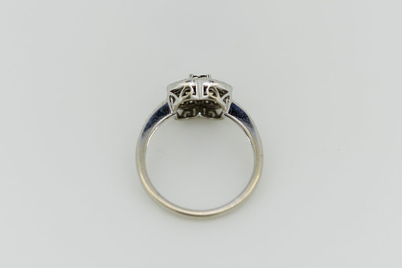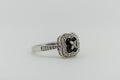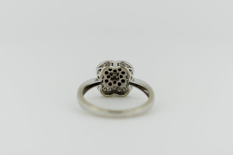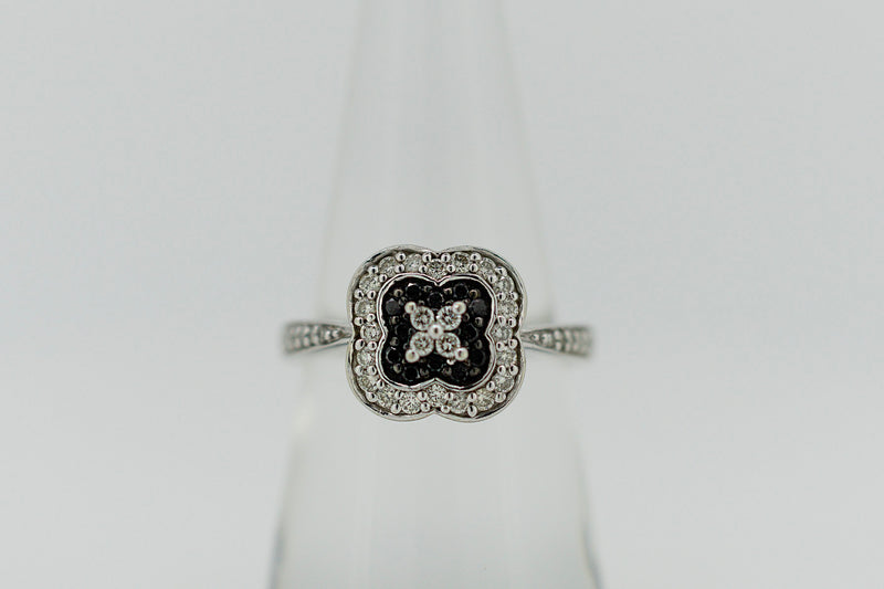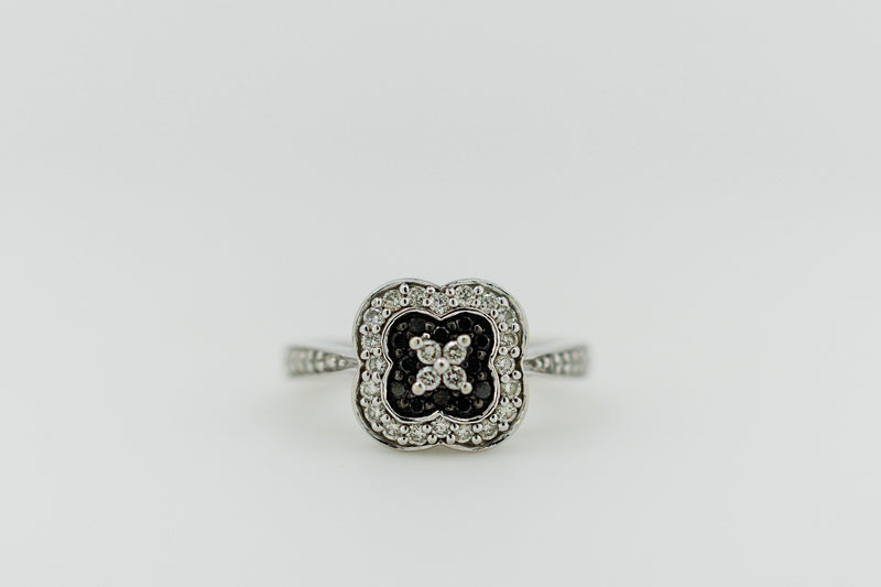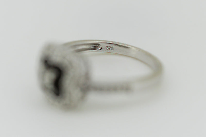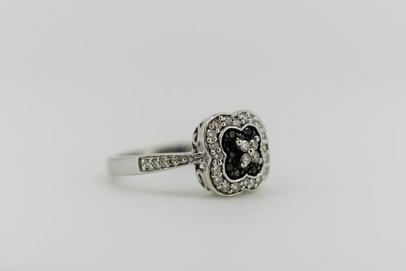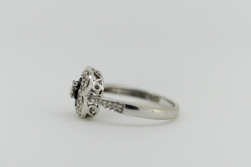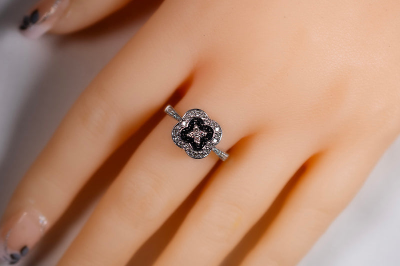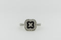 9ct White Gold Diamonds in Floral Shaped-Halo Ring with Black Obsidian Accent Stones #9349
