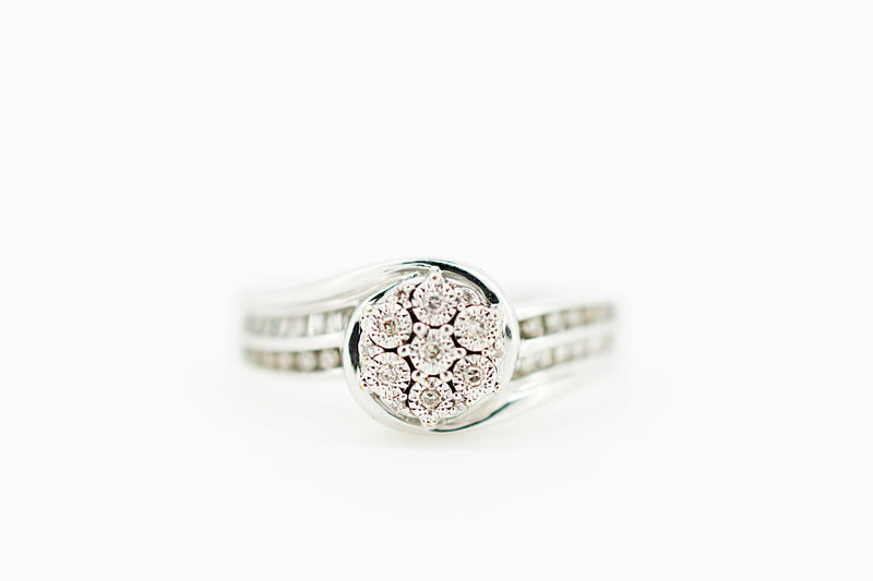 9ct White Gold Floral Shape Cubic Zirconia Ring #28428