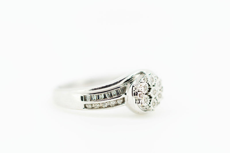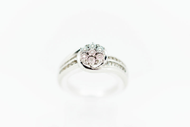 9ct White Gold Floral Shape Cubic Zirconia Ring