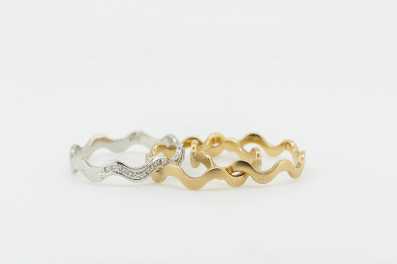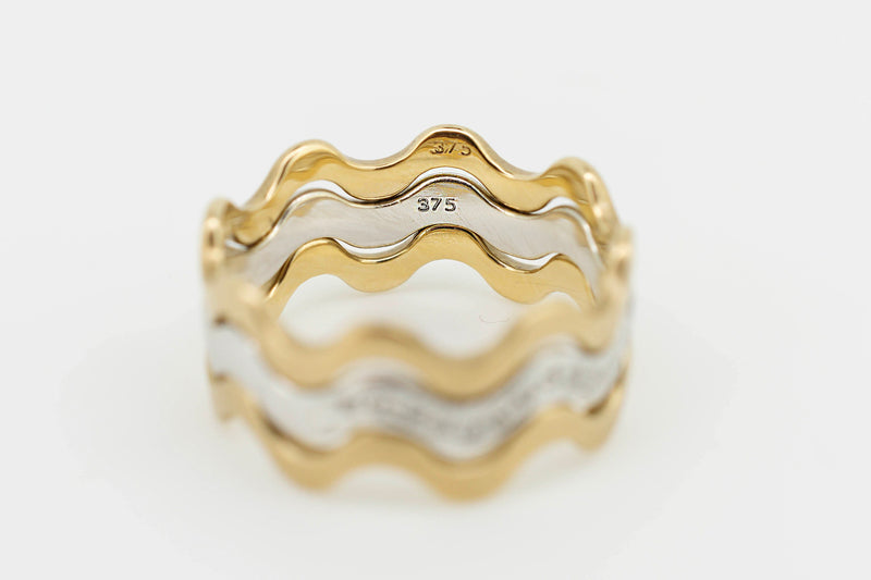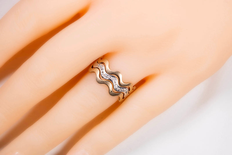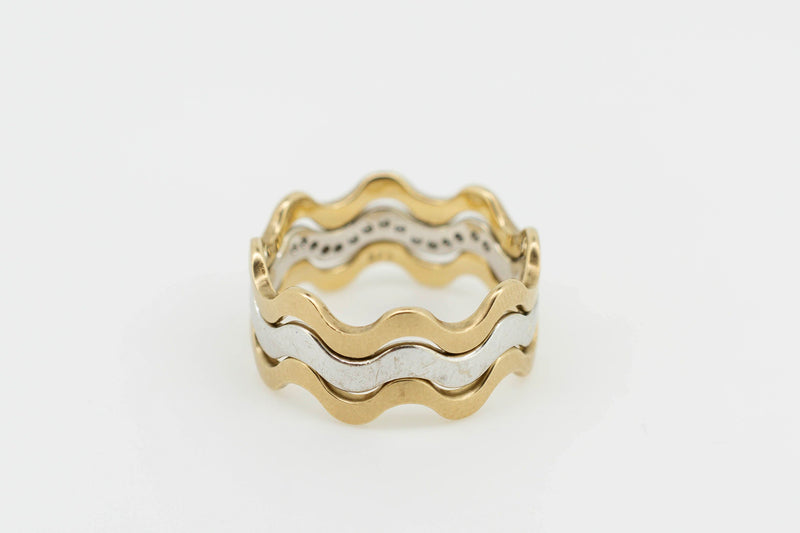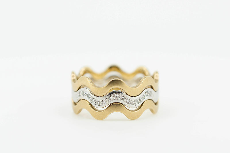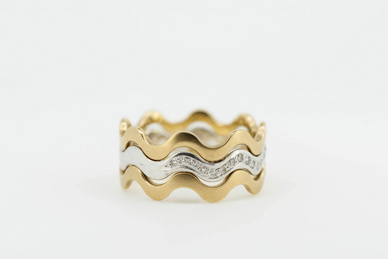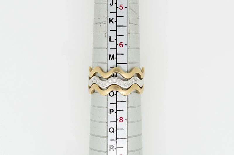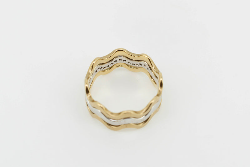 9ct Yellow and White Gold Trilogy Interlocking Ring With Channel Set Accent Diamonds
