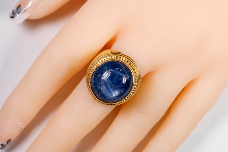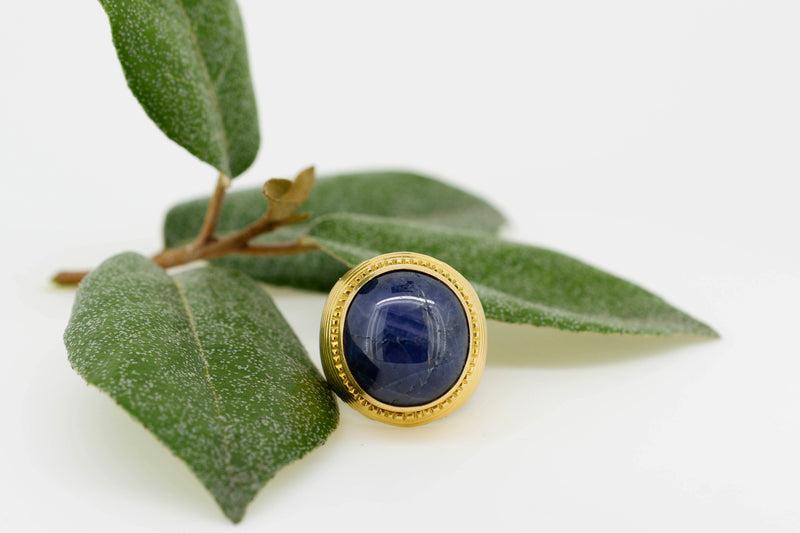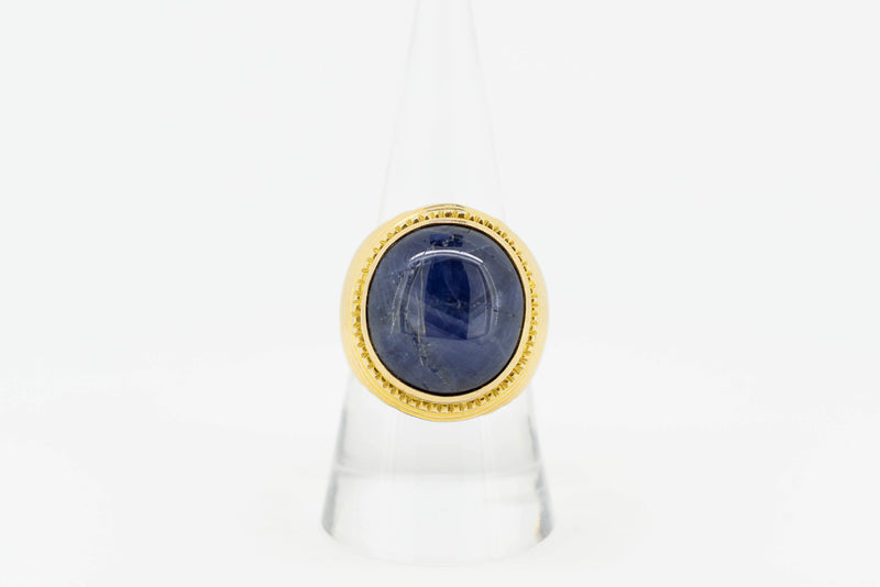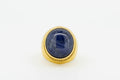 9ct Yellow Gold Blue Polished Stone Cocktail Ring With Thick Band Detailed by Filigree #27898-1