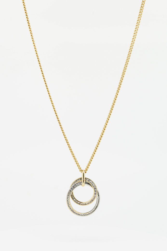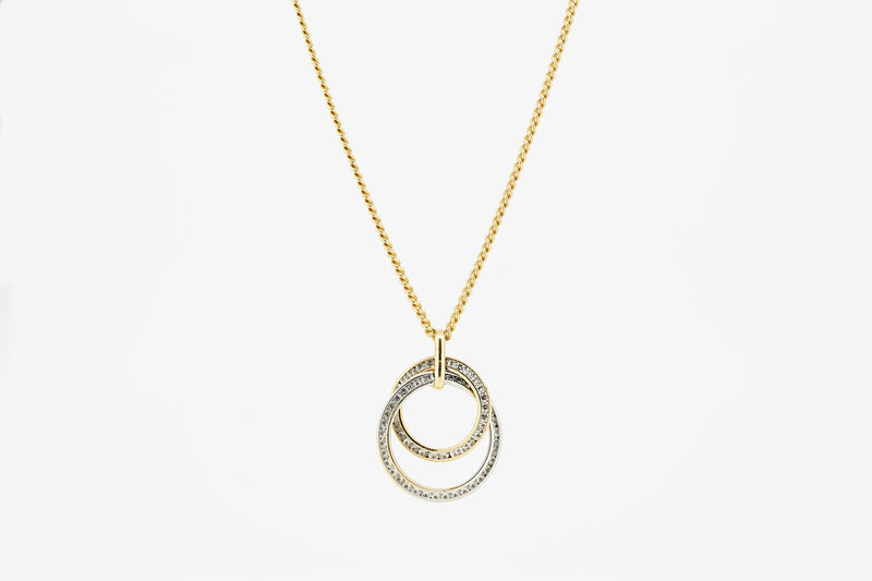 9ct Yellow Gold Necklace with White and Yellow Gold Channeled Diamond Accent Stone Double Circle Pendant
