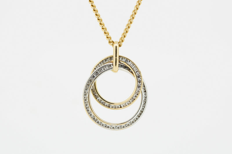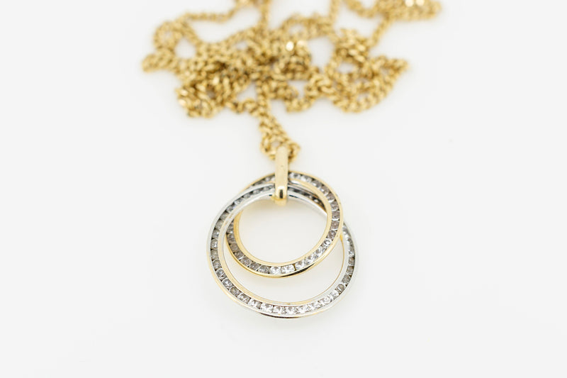 9ct Yellow Gold Necklace with White and Yellow Gold Channeled Diamond Accent Stone Double Circle Pendant #28033