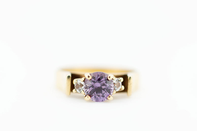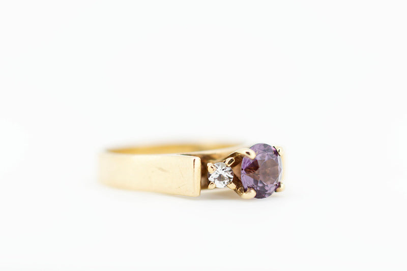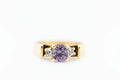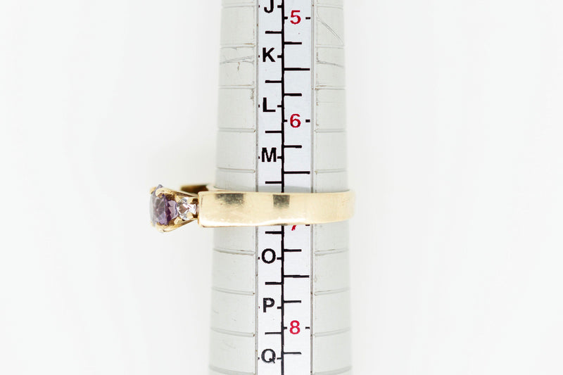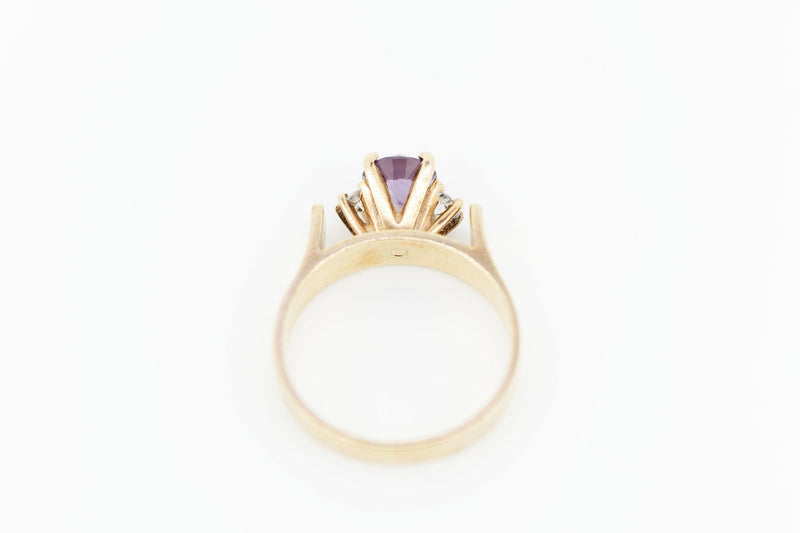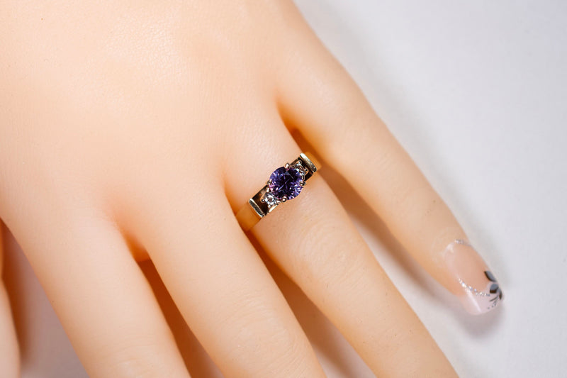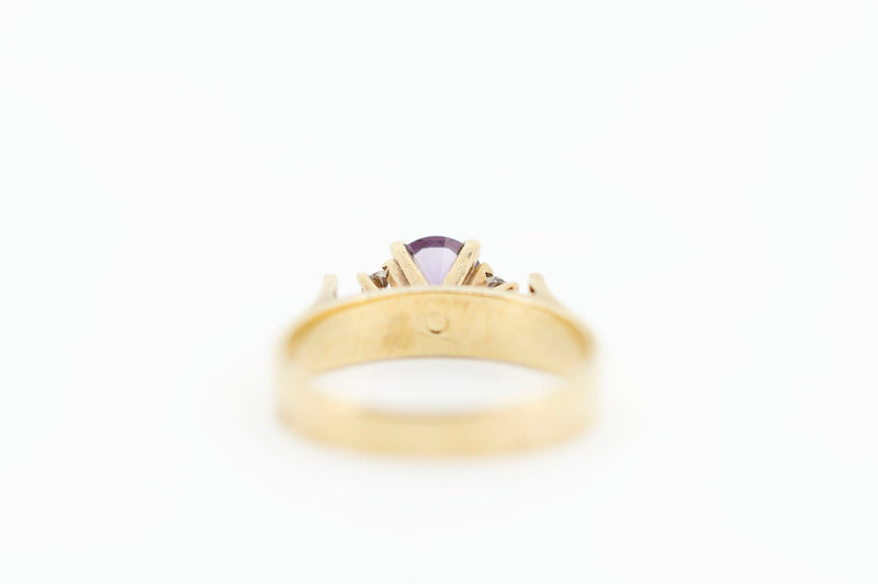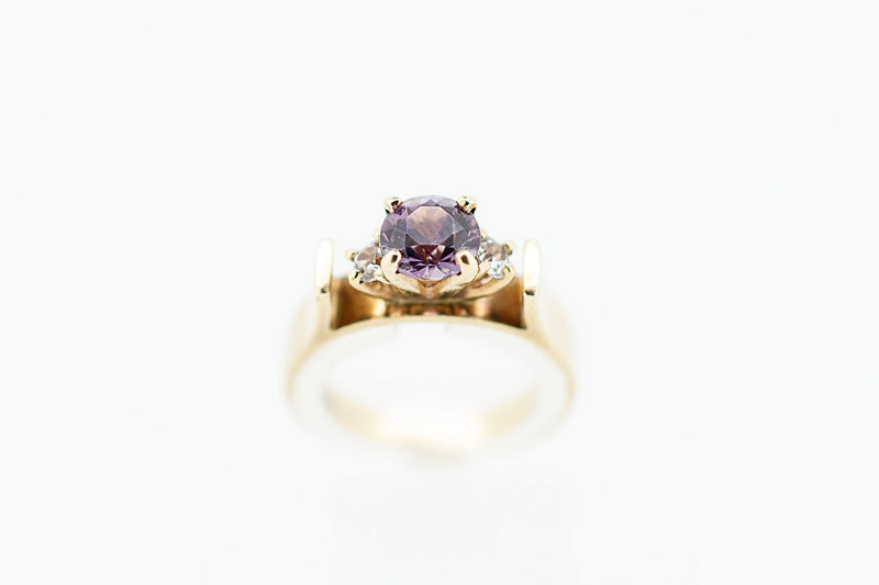 9ct Yellow Gold Purple Cubic Zirconia Ring in V Shape Setting with Cubic Zirconia Accent Stones #28433