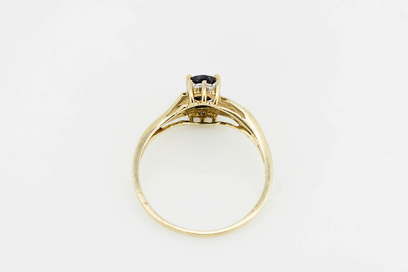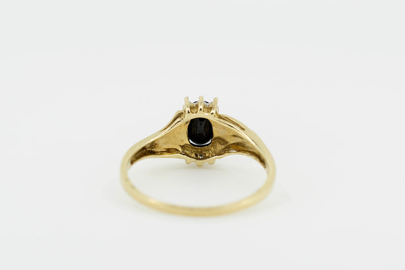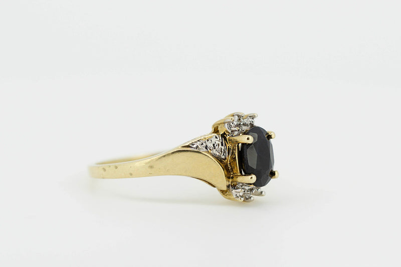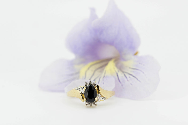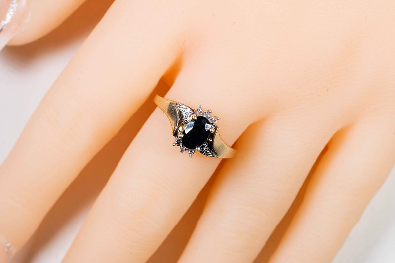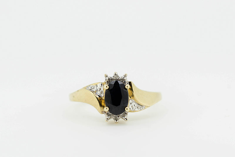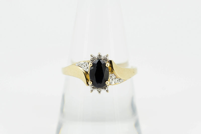 9ct Yellow Gold Ring With Oval Dark Sapphire With Accent Diamonds #27898-5