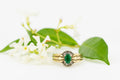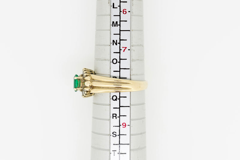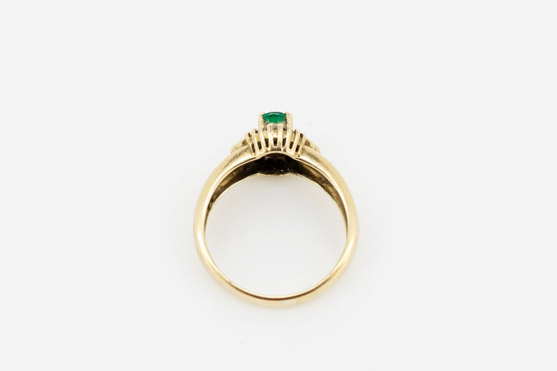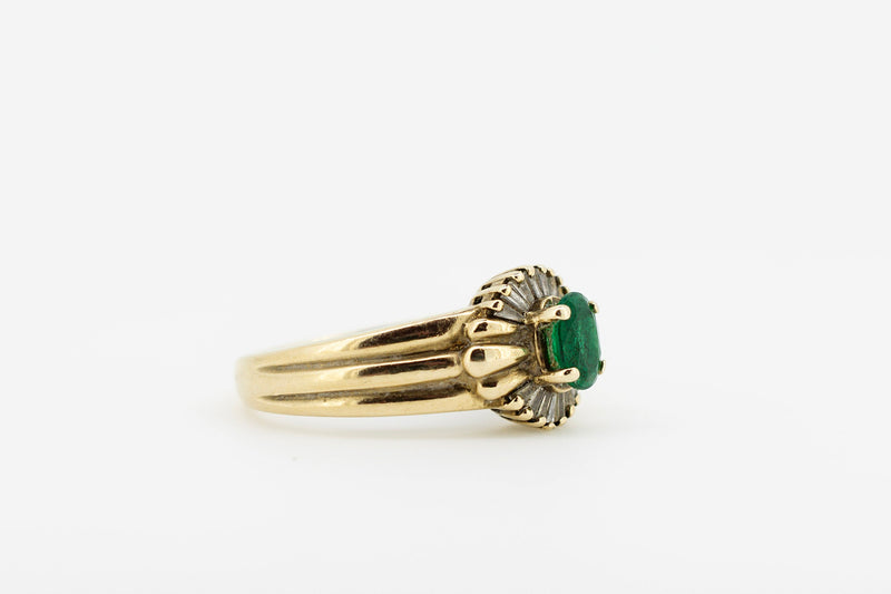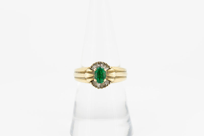 9ct Yellow Gold Solitaire Emerald and Baguette Diamond Vintage Ring #28136-5