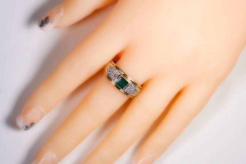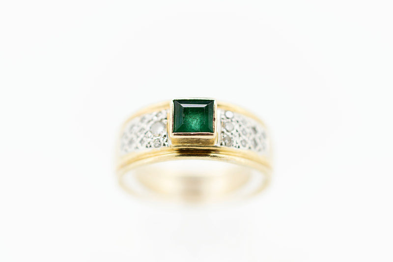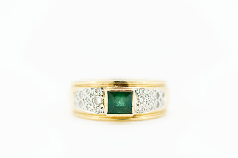 9ct Yellow Gold Square Emerald in Bevel Setting with Pave Diamonds