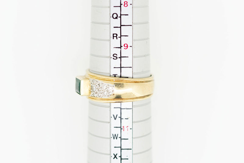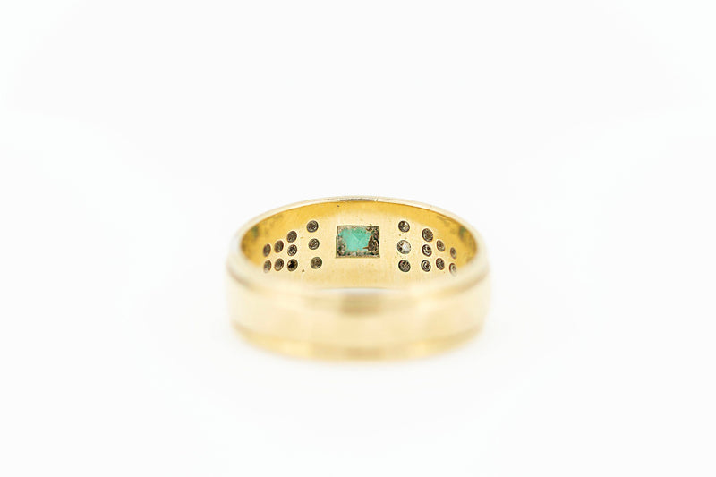 9ct Yellow Gold Square Emerald in Bevel Setting with Pave Diamonds #19853