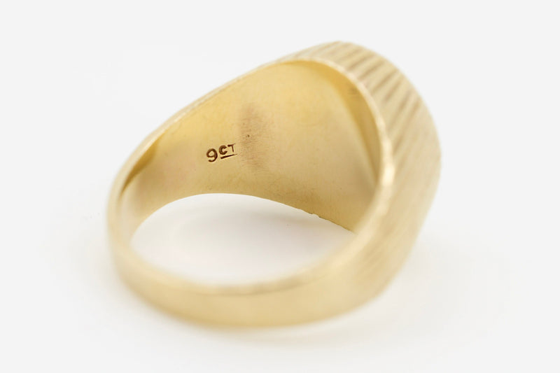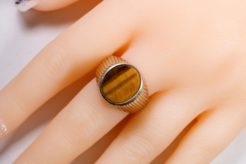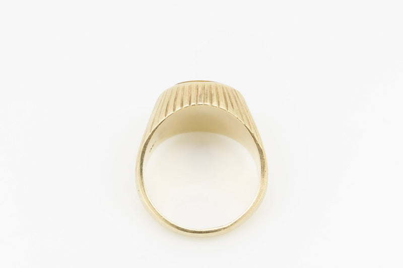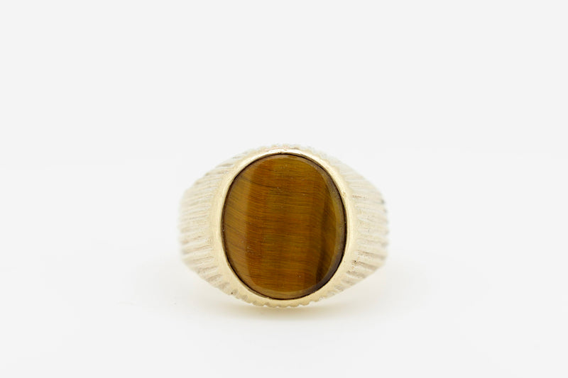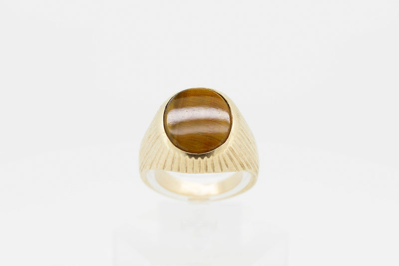 9ct Yellow Gold Tigers Eye Stone Signet Ring With Filigree