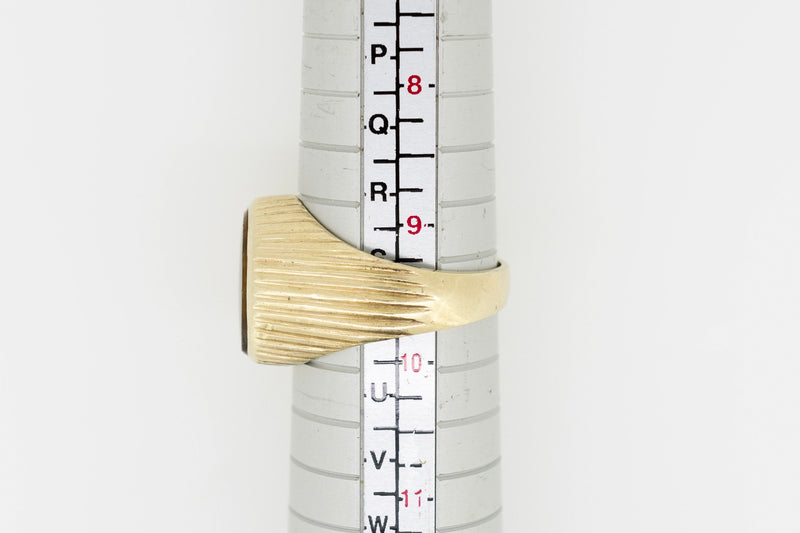 9ct Yellow Gold Tigers Eye Stone Signet Ring With Filigree #28133-1