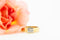 This princess cut diamond is bezel-set in a hand cut solid white gold plate. The white gold plate sits appon an 18ct yellow gold setting with a pierced heart on two sides.