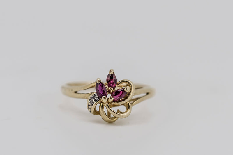 9ct solid yellow gold diamond and synthetic ruby ring #26025-99