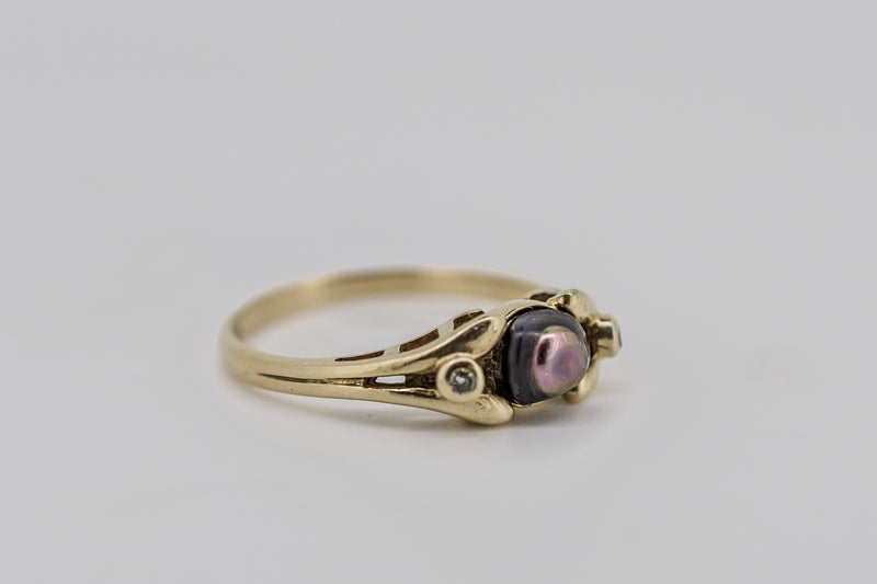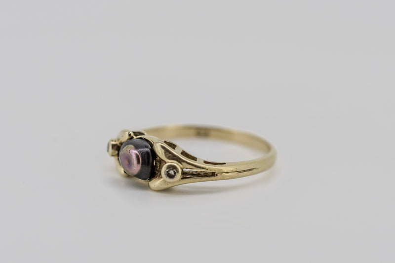 This is a well made custom 9ct gold ring. Unsure as to what the centre piece is.