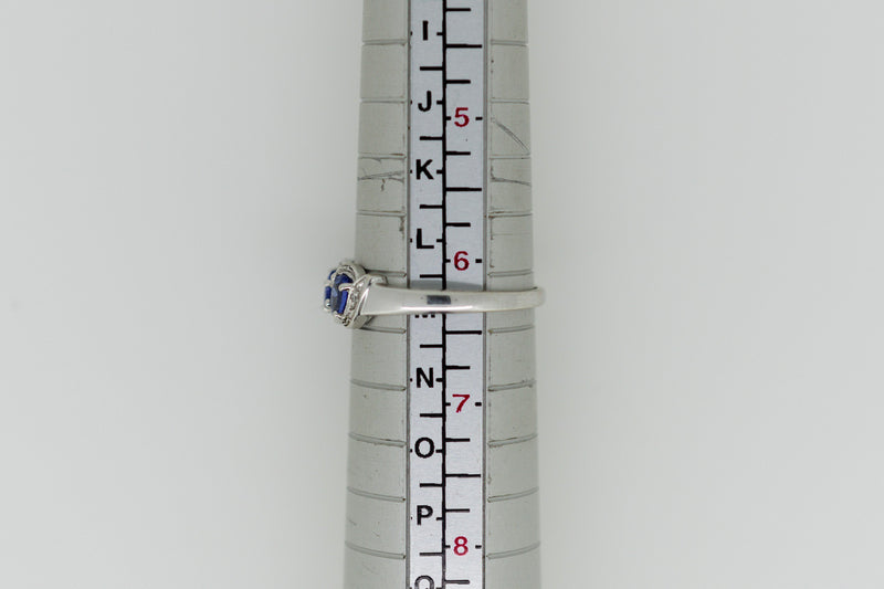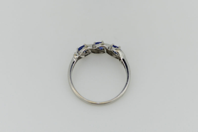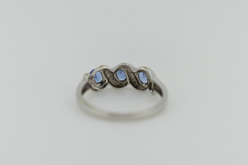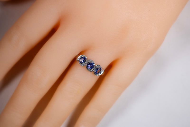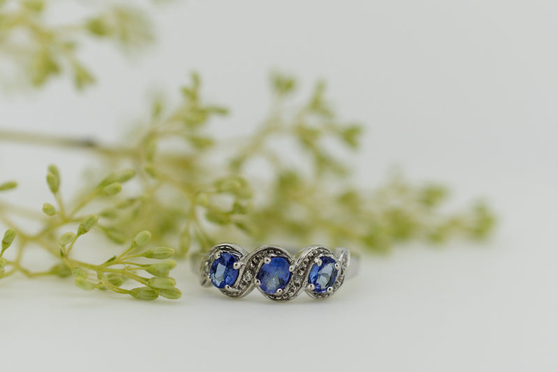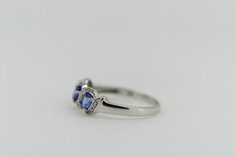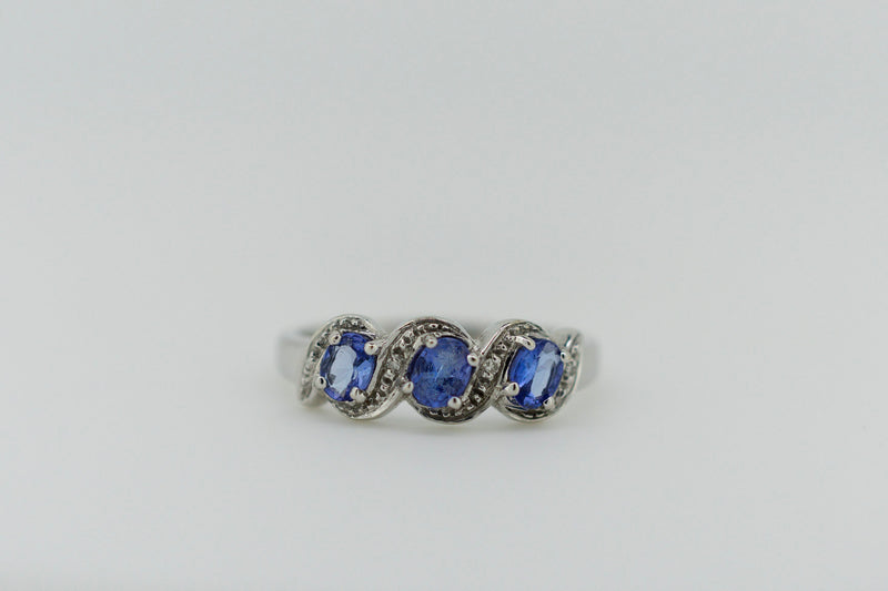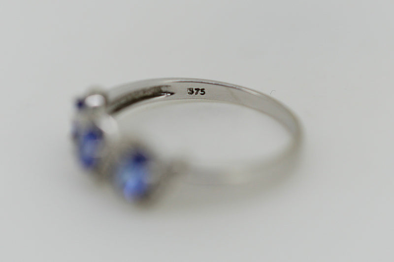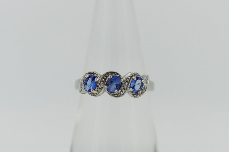 9ct White Gold Blue Tanzanite Trilogy Ring With Accent Diamonds #9361