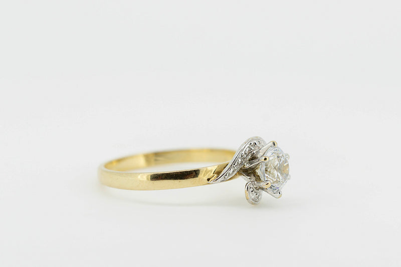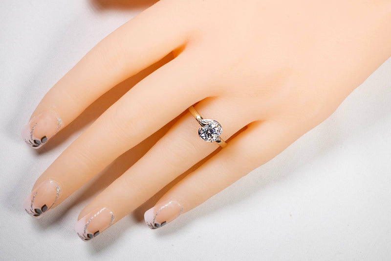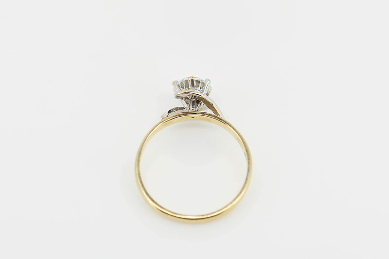 9ct Yellow Gold Ring With Glass Solitaire Prong Set Stone Accompanied by Accent Stones