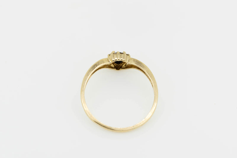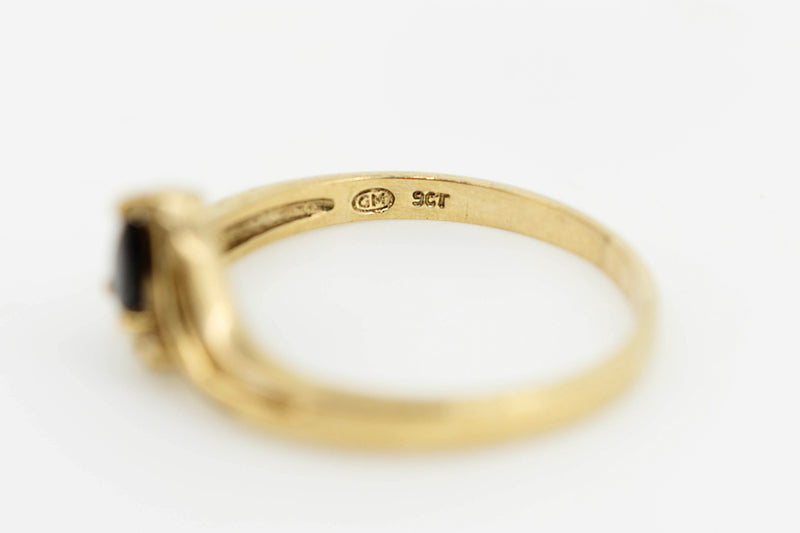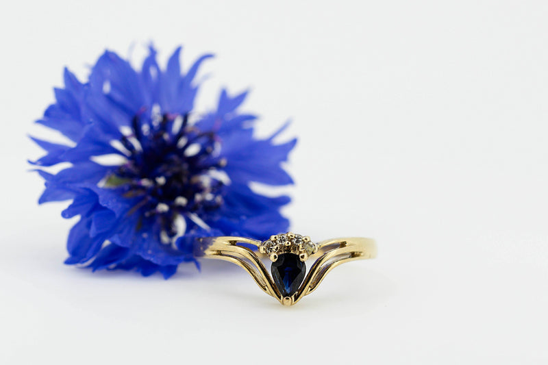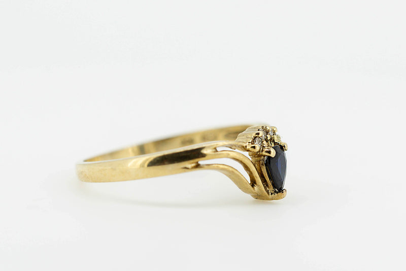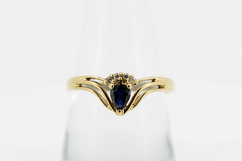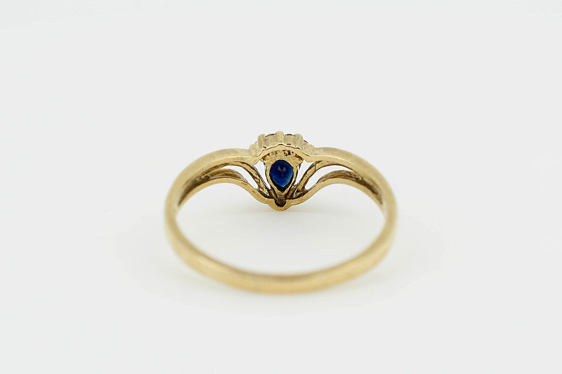 9ct Yellow Gold Ring With Pear Shaped Blue Sapphire Stone Accompanied by Accent Stones