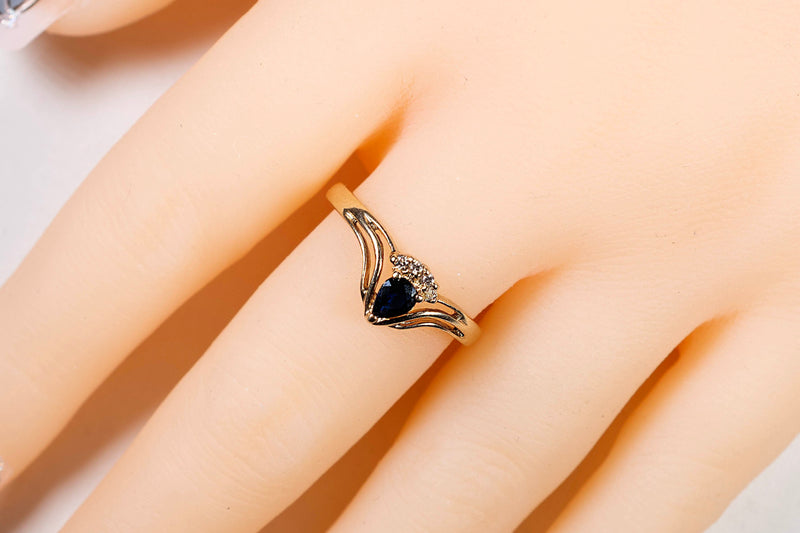 9ct Yellow Gold Ring With Pear Shaped Blue Sapphire Stone Accompanied by Accent Stones #27898-6