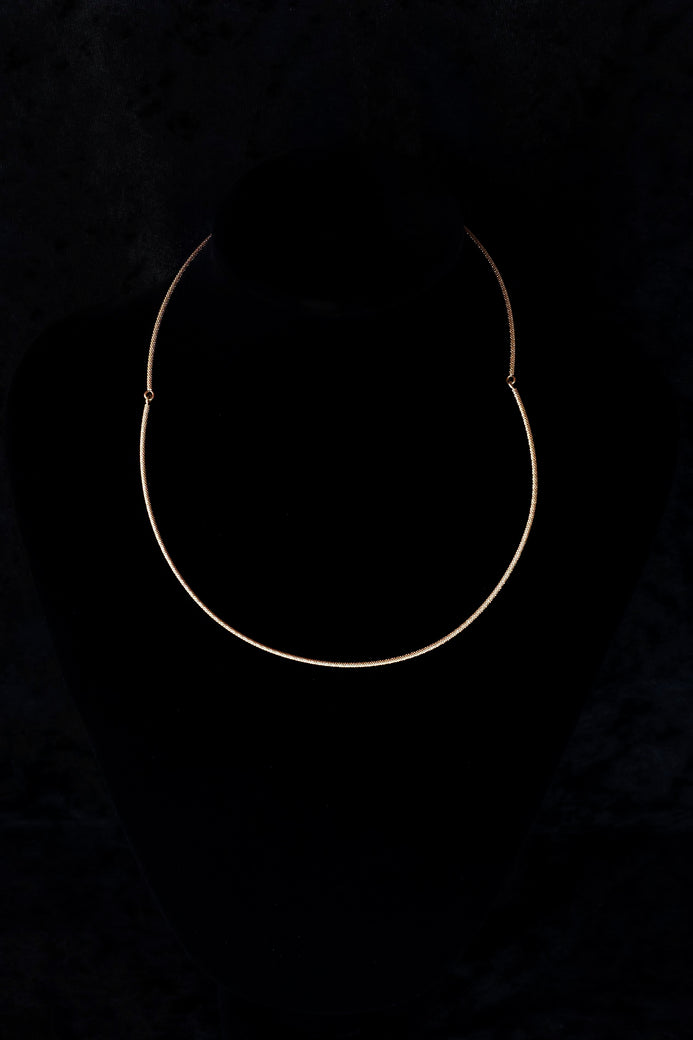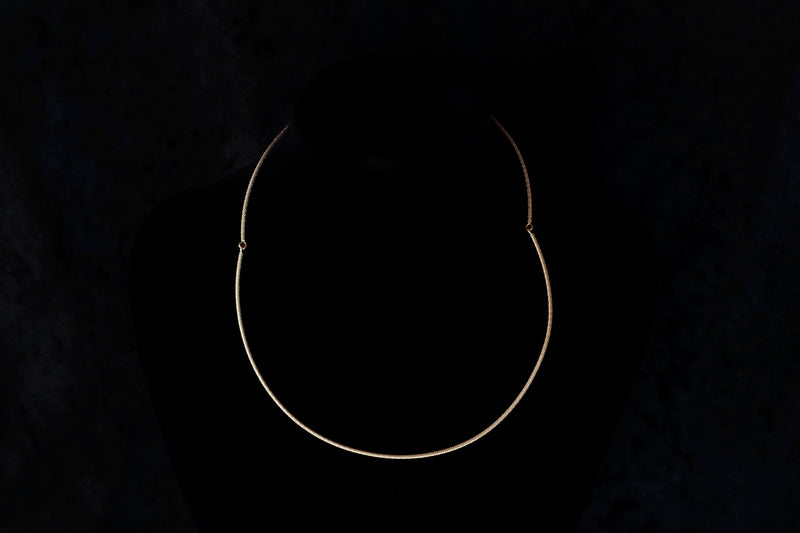 This Necklace is unusual in that it has four solid set curves that hinge half way up. Then clips at the rear.