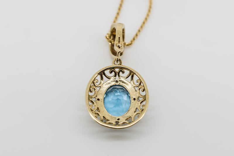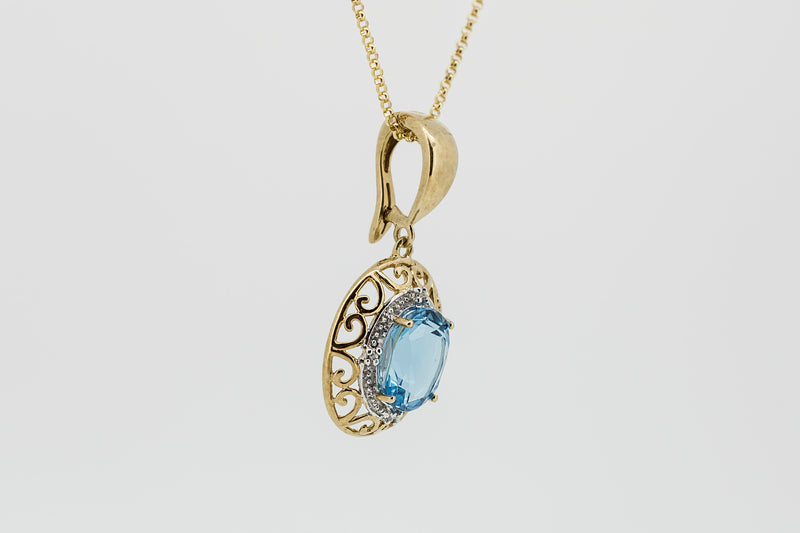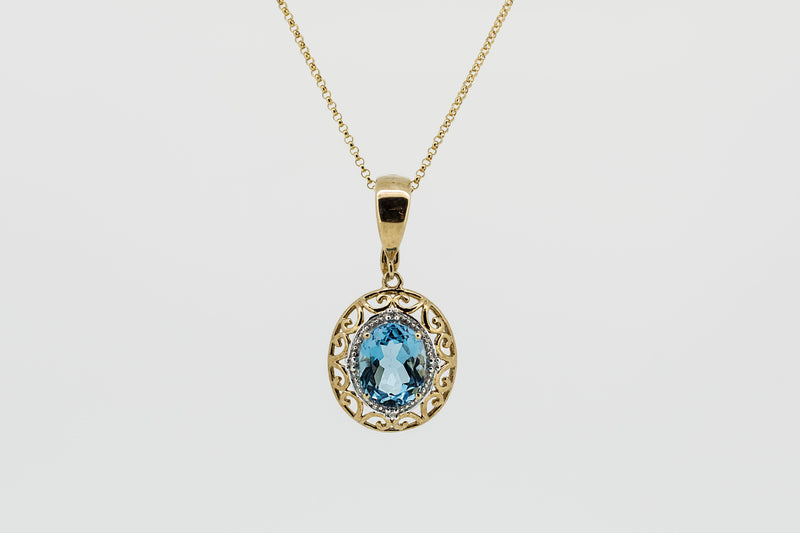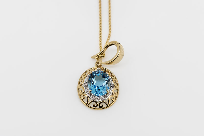 This 9CT gold chain features a stunning blue topaz pendant, perfect for accessorizing any jewelry collection. Durable and elegant, the chain has been crafted using the highest quality gold for a truly luxurious piece.