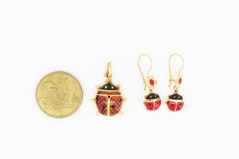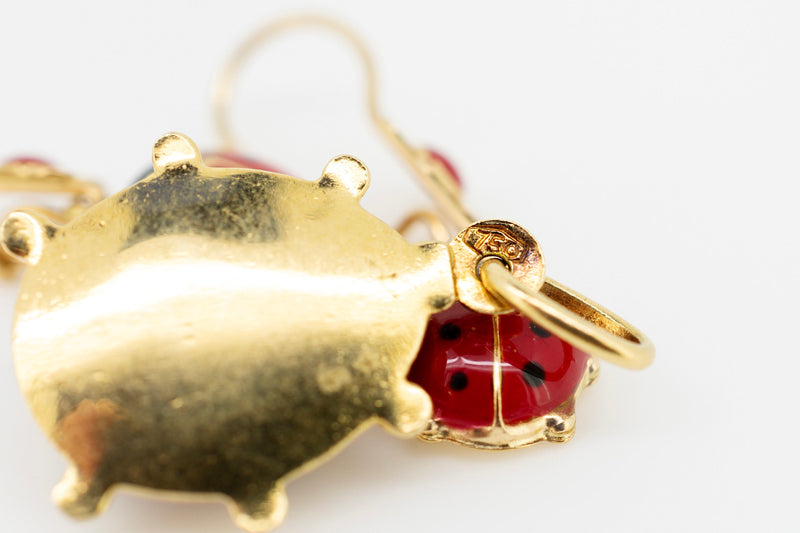 Cute little ladybug earrings in 9ct gold and enamel painted.