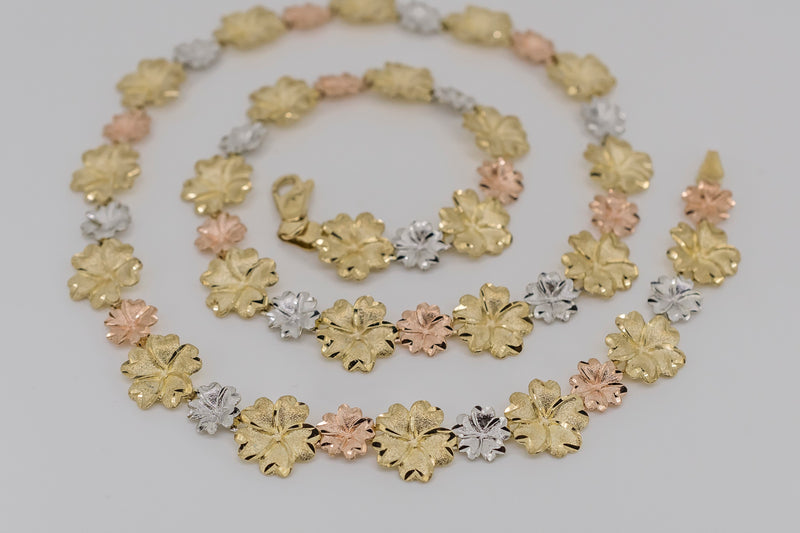 9ct gold tri coloured floral necklace and earring set 20000-129